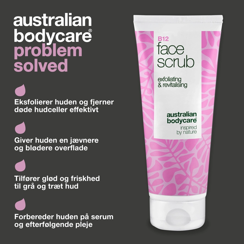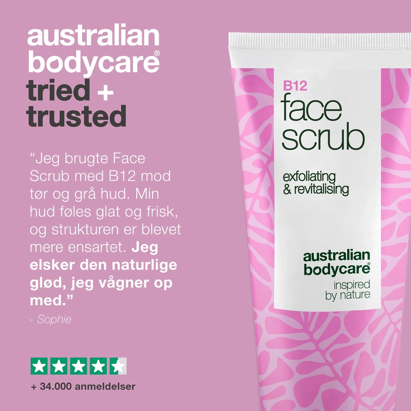 Das Australian Bodycare B12 Face Scrub ist ein Gesichtspeeling mit Vitamin B12 – für alle, die sich glattere und strahlendere Haut wünschen. Es entfernt sanft abgestorbene Hautzellen, die die Haut stumpf und uneben machen können, und hilft ihr, ihren natürlichen Glanz zurückzugewinnen. Gleichzeitig pflegt und nährt es die Haut mit Wirkstoffen, sodass sie lebendiger, ebenmäßiger und frischer aussieht. Haben Sie genug von fahler und lebloser Haut, der es an Glanz und Elastizität mangelt? Ab 40 beginnt sich die Haut auf natürliche Weise zu verändern – die Zellerneuerung verlangsamt sich, und das ist sichtbar. Die Haut kann sich rauer, grauer und unebenmäßig anfühlen, und es kann sich anfühlen, als würden Ihre Hautpflegeprodukte nicht mehr richtig eindringen. Es kann frustrierend sein, wenn sich Ihre Haut älter anfühlt, als Sie tatsächlich sind. Das Peeling kombiniert physikalische und chemische Peelings für eine effektive Hauterneuerung – ohne sich zu aggressiv anzufühlen. Aprikosenkernpulver entfernt abgestorbene Hautzellen an der Oberfläche, während Glykolsäure tiefer wirkt und die natürliche Zellerneuerung der Haut fördert. Zusammen glätten sie die Hautoberfläche und machen sie ebenmäßiger. Vitamin B12 (Cyanocobalamin) ist bekannt für seine Fähigkeit, die Hautbarriere zu stärken und den Hautton zu verbessern – perfekt für reife Haut, die einen zusätzlichen Schub braucht. Glycerin und Glyceryl Oleate sorgen dafür, dass die Haut zusätzlich mit Feuchtigkeit und Komfort versorgt wird, sodass sie sich nach der Anwendung weich und geschmeidig anfühlt. Vorteile: - Gesichtspeeling - Verleiht der Haut neuen Glanz und Ausstrahlung - Peelt sowohl in der Tiefe als auch an der Oberfläche mit Glykolsäure und Aprikosenkernen - Enthält Vitamin B12 – ideal für reife Haut über 40 - Verbessert die Hautstruktur und reduziert stumpfen und grauen Hautton - Hilft Ihrer Haut, Feuchtigkeit und nachfolgende Pflege besser aufzunehmen - Inspiriert von der Natur – mit pflanzlichen Inhaltsstoffen wie Lavendel und Sandelholz Anwendung: - Reinigen Sie die Haut. Waschen Sie zunächst Ihr Gesicht mit einem Gesichtsreiniger, der Make-up, Schmutz und überschüssiges Öl entfernt. Tragen Sie das Peeling auf die saubere, feuchte Haut auf. - Tragen Sie das Produkt auf. Geben Sie eine angemessene Menge des Gesichtspeelings auf Ihre Fingerspitzen und verteilen Sie es gleichmäßig auf Ihrem Gesicht. Vermeiden Sie die empfindliche Haut um die Augen. - Sanft einmassieren. Massieren Sie das Peeling mit kreisenden Bewegungen 1–2 Minuten lang in die Haut ein – insbesondere auf Stellen mit Rauheit, trockenen Stellen oder verstopften Poren (z. B. Nase und Kinn). - Gründlich abspülen. Spülen Sie das Peeling mit lauwarmem Wasser gründlich von der Haut ab. Tupfen Sie die Haut sanft mit einem sauberen Handtuch trocken. - Tragen Sie die Nachbehandlung auf. Verwenden Sie abschließend ein Serum und eine Feuchtigkeitscreme, die zu Ihrem Hauttyp passen. Nach dem Peeling ist die Haut besonders aufnahmefähig für Wirkstoffe. - Verwenden Sie das Gesichtspeeling 2–3 Mal pro Woche – je nach Hauttyp und Bedürfnissen. Übertreiben Sie es nicht, da zu häufiges Peeling das natürliche Gleichgewicht der Haut stören kann. - Bonus-Tipp: Verwenden Sie das Peeling abends – so hat Ihre Haut Zeit, sich über Nacht zu regenerieren, und Sie wachen mit sichtbar frischerer Haut auf. Denken Sie daran, tagsüber Sonnenschutz zu verwenden, da gepeelte Haut empfindlicher auf die Sonne reagieren kann. Bei Hautpflege geht es uns nicht darum, Wunder zu versprechen. Es geht darum, das Beste aus den Inhaltsstoffen herauszuholen, die wir mit Sorgfalt und Inspiration aus der Natur ausgewählt haben. Jeder Inhaltsstoff wird aufgrund seiner besonderen Fähigkeit ausgewählt, Ihre Haut zu stärken, zu schützen und zu pflegen – ehrlich und effektiv. Es ist keine Zauberei. Es ist liebevolle und durchdachte Hautpflege, der Sie vertrauen können. Zutatenliste: Aqua/Wasser Coco-Glucosid Glycerin Prunus Armeniaca (Aprikose) Samenpulver Coco-Betain Glykolsäure Acrylate/C10-30 Alkylacrylat-Crosspolymer Natriumhydroxid Cyanocobalamin Glyceryloleat Kaliumsorbat Natriumbenzoat Tocopherol Lavandulaöl/-extrakt Phenoxyethanol Tetranatriumiminodisuccinat Linalylacetat Santalol Pflanzenöl Hydriertes Palmglyceridcitrat Parfüm Zitronensäure * Linalool.