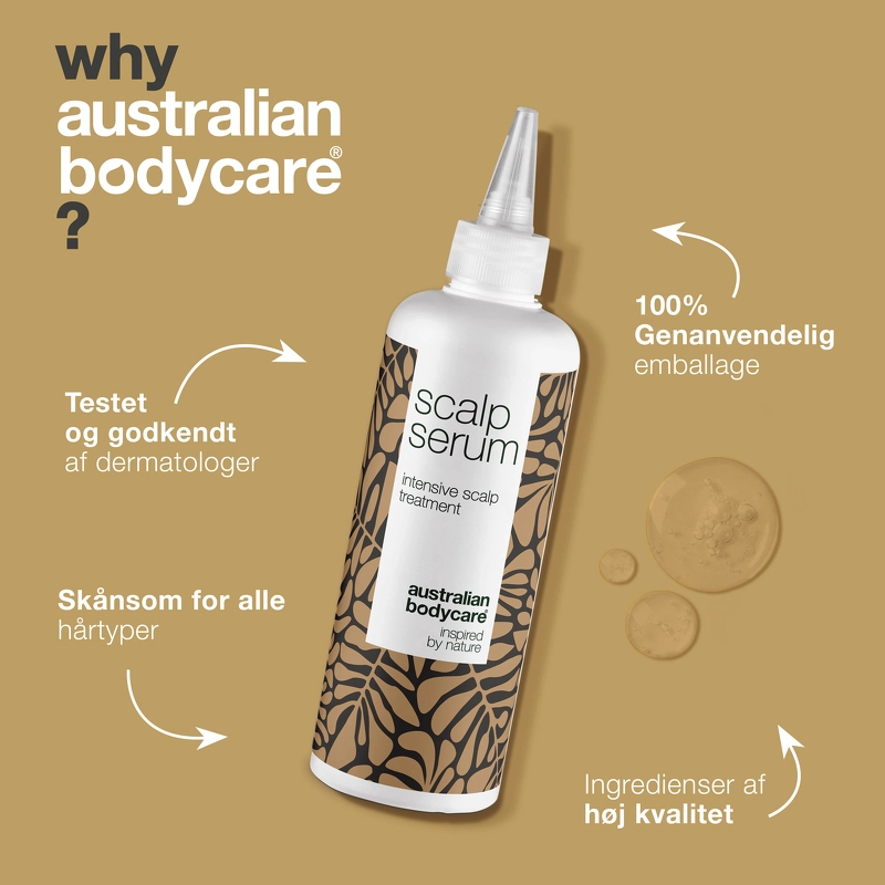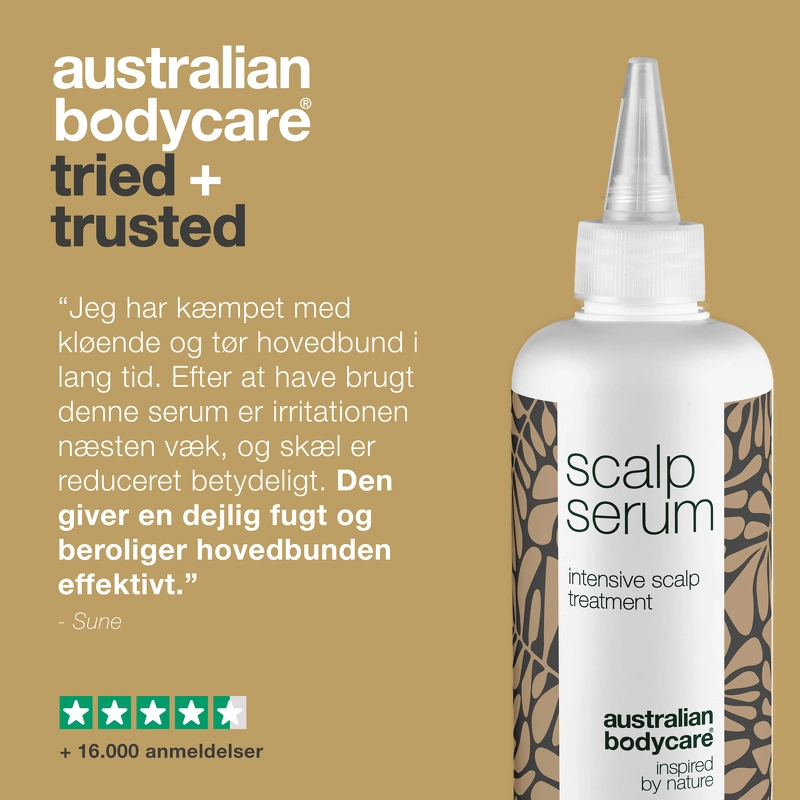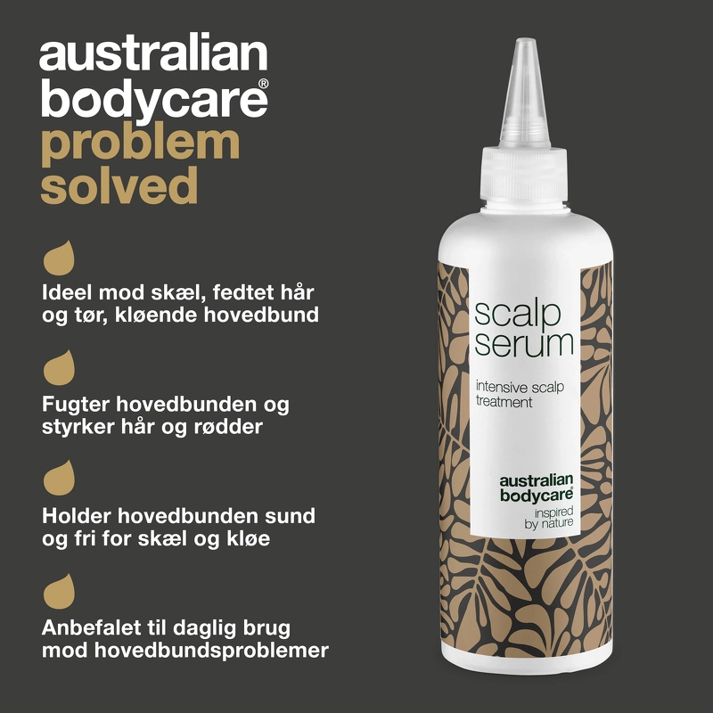 Australian Bodycare Scalp Serum ist eine hochwirksame Kopfhautbehandlung, die gegen Schuppen, Juckreiz, trockene oder gereizte Kopfhaut angewendet wird. Es ist mit Teebaumöl, das eine antiseptische Wirkung hat und zusammen mit Milchsäureestern die Bakterien bekämpft, die Schuppen, Juckreiz und Reizungen verursachen. Es ist auch mit Macadamia-Nussöl, das die Haarwurzeln stärkt und einen Feuchtigkeitsschub verleiht, während tamanischer Pfeffer eine beruhigende Wirkung auf Irritationen hat. Das Produkt wirkt vorbeugend auf alle Arten von Kopfhautproblemen und hilft Ihnen, eine saubere und gesunde Kopfhaut zu erhalten. Vorteil: - Kopfhautbehandlung - Verhindert Schuppen, Juckreiz, trockene oder gereizte Kopfhaut - Falsches Antiseptikum - Stärkt die Haarwurzeln und gibt einen Feuchtigkeitsschub - Wirkt beruhigend auf Reizungen - Vorbeugende Wirkung bei allen Arten von Kopfhautproblemen - Bietet eine saubere und gesunde Kopfhaut - Dermatologisch getestet - Frei von Parabenen - Vegan Anwendung: - Verteilen Sie das Produkt in der trockenen Kopfhaut - Das Produkt sanft einmassieren - 5 Minuten einwirken lassen - möglichst aber auch über Nacht - Waschen Sie Ihre Haare gründlich mit Australian Bodycare Hair Clean Shampoo - Täglich zur Behandlung verwendet - Wird einmal pro Woche angewendet, um dies zu verhindern - Kann auch im Bartbereich gegen Juckreiz und Reizungen eingesetzt werden Zutatenliste: Wasser / Aqua / Eau, Glycerin, PEG-7-Glycerylcocoat, Natriumcaproyl / Lauroyllactylat, Capryl- / Capric-Triglycerid, Melaleuca Alternifolia (Teebaum) -Blattöl, Macadamia Ternifolia-Samenöl, Allantoin, Tocopherol, Tasmannia Lanceodina Beta-Caryophyllen, Acrylate / C10-30-Alkylacrylat-Crosspolymer, Menthol, Carbomer, Xanthangummi, Natriumhydroxid, Ethylhexylglycerin, Phenoxyethanol, Limonen, Linalool.