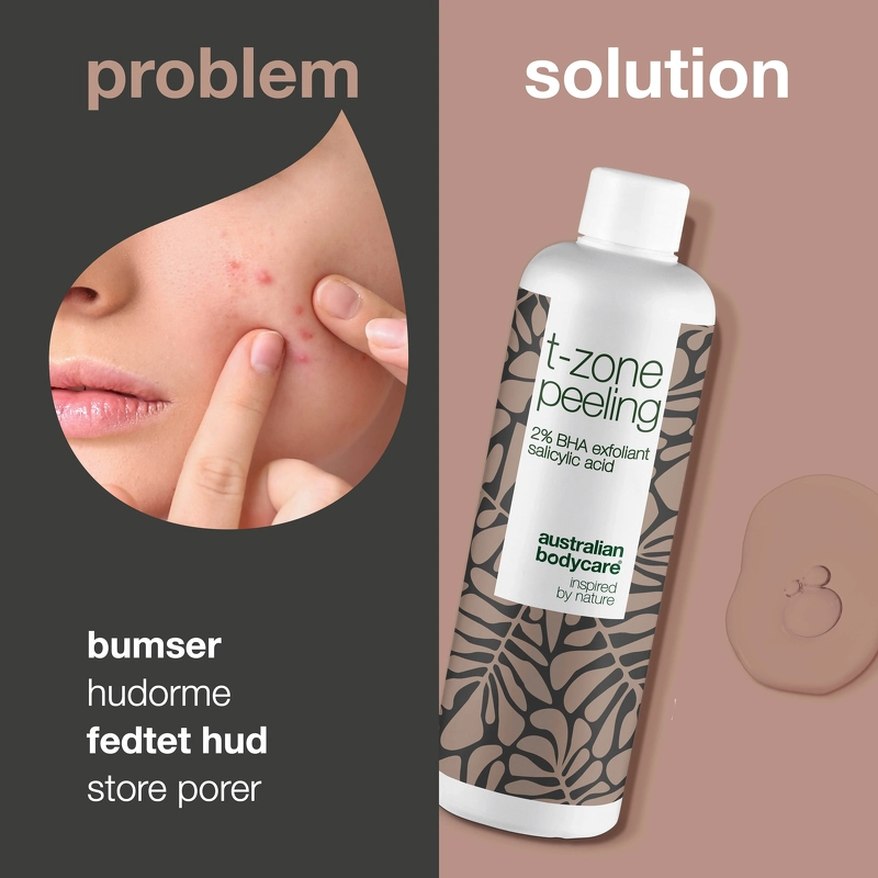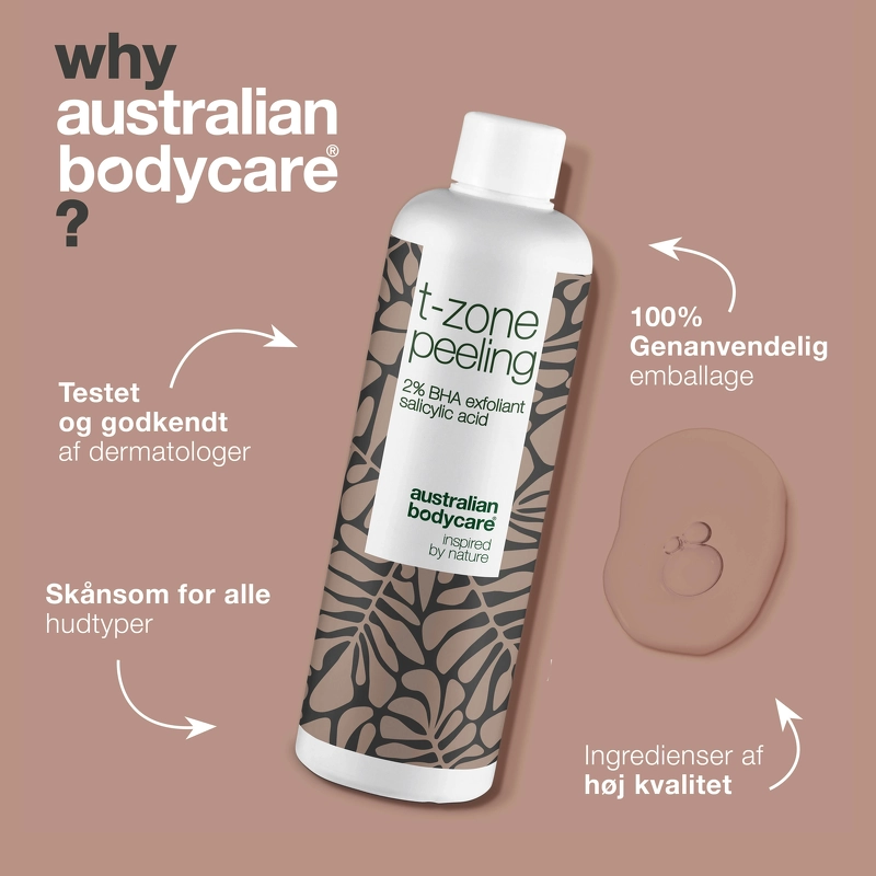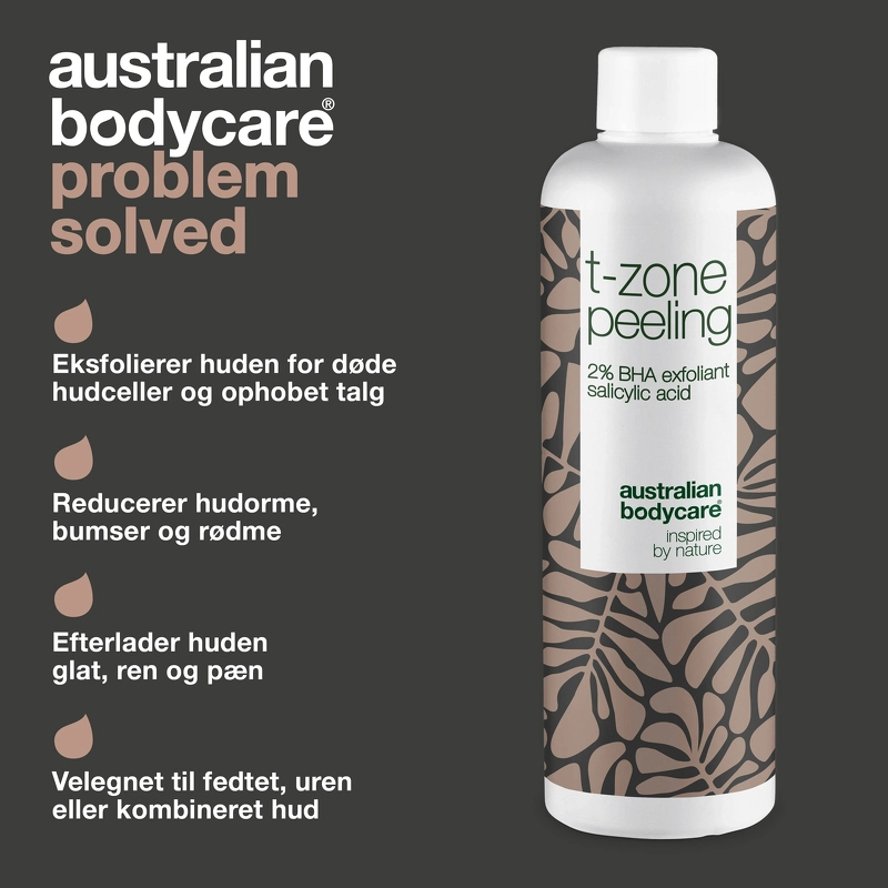 Das Australian Bodycare T-Zone Peeling ist ein flüssiges BHA-Salicylsäure-Peeling. Es entfernt effektiv, aber sanft, die Gesichtshaut von angesammeltem Schmutz, Talg und abgestorbenen Hautzellen, um Mitesser, Pickel, fettige Haut und große Poren zu reduzieren und die Haut glatt und ebenmäßig zu machen. Dieses Peeling kann für alle Hauttypen verwendet werden, ist jedoch besonders wirksam bei fettigen Hauttypen, da BHA öllöslich ist. Das T-Zonen-Peeling hat zudem eine beruhigende Wirkung auf die Haut und kann daher auch zur Pflege von Rötungen eingesetzt werden. Das Produkt kann je nach Bedarf und Hauttyp im gesamten Gesicht oder nur in der T-Zone angewendet werden. Das Peeling enthält Teebaumöl, das hilft, den Bakterien entgegenzuwirken, die Pickel und Mitesser verursachen können. Das beste Ergebnis mit dem Peeling erzielen Sie, wenn Sie es zusammen mit den anderen Teebaumöl-Gesichtsprodukten von Australian Bodycare verwenden. Vorteile: - Peeling - Für die T-Zone oder das ganze Gesicht - Effektives und sanftes Peeling - Entfernt angesammelten Schmutz, Talg und abgestorbene Hautzellen - Beruhigend - Wirkt Bakterien entgegen, die Pickel und Mitesser verursachen - Für alle Hauttypen - Ideal für fettige, Misch- und unreine Haut - Dermatologisch getestet - Vegan Anwendung: - Kann in der T-Zone, im ganzen Gesicht und am Hals angewendet werden - Mit den Fingern oder einem Wattebausch eine dünne Schicht auf die gereinigte Haut auftragen Pad - Nur eine kleine Menge verwenden, da die Anwendung langsam ist - Das Peeling einwirken lassen, nicht abspülen - Mit Nachtcreme abschließen - Das Peeling zunächst einige Wochen lang an einigen Abenden in der Woche anwenden - Schrittweise steigern Abend und dann jeden Abend und möglicherweise Je nach Hauttyp auch morgens. - Tragen Sie tagsüber immer Sonnenschutz auf, um Sonnenschäden zu vermeiden. - Ergebnisse können Sie erst nach 4-5 Wochen regelmäßiger Anwendung erwarten. - Seien Sie sich bewusst, dass dies normal ist mehrere Ausbrüche im Zusammenhang mit der Einführung neuer Produkte Inhaltsstoffliste: Aqua/Wasser, Butylenglykol, Propandiol, PEG-40 hydriertes Rizinusöl, Zitronensäure, Polysorbat 60, Salicylsäure, Natriumhydroxid, Melaleuca Alternifolia (Teebaum) Blattöl, Phenoxyethanol, Tetranatriumiminodisuccinat, Tocopherol, Limonen.