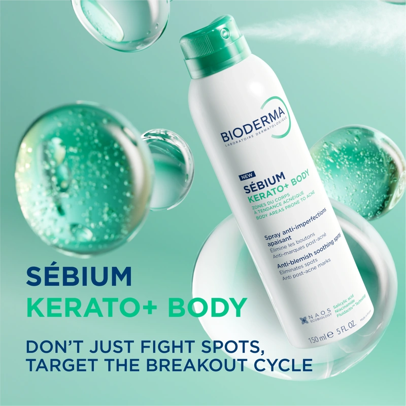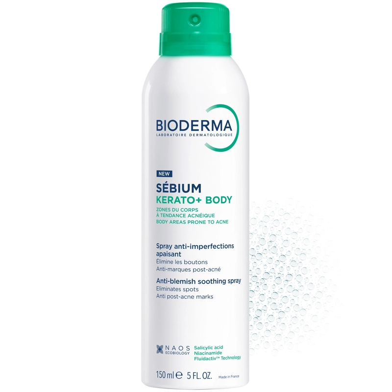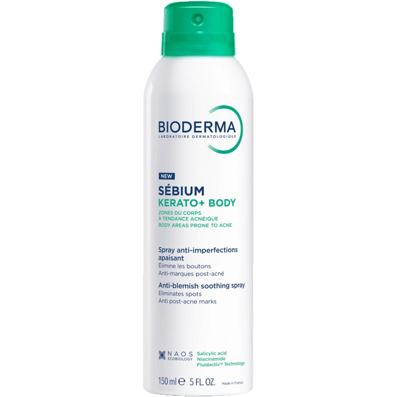 Bioderma Sébium Body Spray ist ein Körperspray mit sofort beruhigender Wirkung, das Hautprobleme an Rücken, Brust und Schultern bekämpft. Die Kombination aus Salicylsäure, Niacinamid und Fliederextrakt reduziert effektiv Pickel und Aknenarben. Die patentierte Fluidactiv™-Technologie, inspiriert vom einzigartigen ECOBIOLOGY-Konzept von NAOS, trägt zur biologischen Normalisierung der Talgproduktion bei und beugt verstopften Poren vor. Die leichte Formel zieht schnell ein, fettet und klebt nicht und hinterlässt keine Flecken auf der Kleidung. Der physiologische pH-Wert sorgt für hohe Hautverträglichkeit. Vorteile: - Körperspray gegen unreine Haut - Geeignet für Rücken, Brust und Schultern - Beruhigt die Haut sofort - Enthält Salicylsäure und Niacinamid - Reduziert Akne und Aknenarben - Fluidactiv™-Technologie beugt verstopften Poren vor - Leichte und schnell einziehende Formel - Nicht fettend und nicht klebrig - Hinterlässt keine Flecken auf der Kleidung - Physiologischer pH-Wert und hohe Hautverträglichkeit Anwendung: - Auf die gereinigte und trockene Haut auftragen - Direkt auf Rücken, Brust oder Schultern sprühen - Kann täglich oder nach Bedarf angewendet werden - Produkt trocknen lassen - nicht abspülen - Kontakt mit Augen und Gesicht vermeiden - Regelmäßig anwenden für optimale Ergebnisse