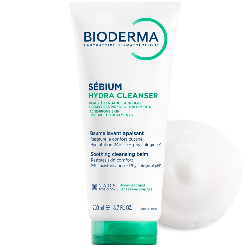 Finden Sie Mehr von dieser Marke:Der Bioderma Sébium Hydra Cleanser ist ein milder, seifenfreier Reinigungsbalsam mit beruhigenden und pflegenden Eigenschaften. Er wurde speziell für zu Akne neigende Haut entwickelt, die durch Behandlungen trocken oder empfindlich geworden ist. Er reinigt sanft, ohne die Haut zu reizen, und trägt dazu bei, ihr Wohlbefinden und ihr Gleichgewicht wiederherzustellen. Die Formel besteht zu 93 % aus biomimetischen Inhaltsstoffen, die optimal mit der Haut harmonieren – darunter pflegende Sheabutter. Sie spendet bis zu 24 Stunden intensive Feuchtigkeit. Dermatologisch und augenärztlich getestet mit sehr hoher Haut- und Augenverträglichkeit. Vorteile: - Milder, seifenfreier Reinigungsbalsam - Entwickelt für zu Akne neigende, trockene oder empfindliche Haut - Reinigt sanft und reizt die Haut nicht - Beruhigende und pflegende Formel - Enthält 93 % biomimetische Inhaltsstoffe - Mit pflegender Sheabutter - Spendet bis zu 24 Stunden Feuchtigkeit - Stellt das Wohlbefinden und das Gleichgewicht der Haut wieder her - Dermatologisch und augenärztlich getestet - Sehr gute Haut- und Augenverträglichkeit Anwendung: - Auf die angefeuchtete Haut auftragen - Sanft ins Gesicht einmassieren - Gründlich mit Wasser abspülen - Morgens und/oder abends anwenden - Für die tägliche Reinigung geeignet - Direkten Augenkontakt vermeiden