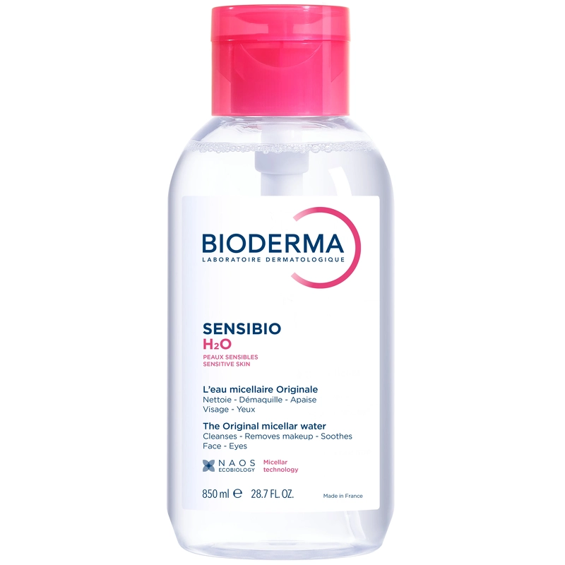Bioderma Sensibio H2O Mizellenwasser mit Pumpe ist ein Reinigungsprodukt mit integrierter Pumpe, die die Dosierung der richtigen Produktmenge besonders einfach macht. Bioderma Sensibio H2O Mizellenwasser ist ein mildes und beruhigendes Reinigungsprodukt für Gesicht und Augen, das speziell für empfindliche Haut entwickelt wurde, aber für alle Hauttypen geeignet ist. Dank der Mizellentechnologie wird die Haut porentief gereinigt, sodass Schmutz, Unreinheiten, Make-up und Umweltverschmutzungen effektiv entfernt werden, während das natürliche Gleichgewicht und die Barriere der Haut erhalten und geschützt werden. Bioderma Sensibio H2O Mizellenwasser ist dank seiner milden Formel mit speziell ausgewählten Inhaltsstoffen und einem hautfreundlichen pH-Wert von ca. 5,5 sehr gut verträglich. Es enthält außerdem einen Komplex aus 3 Zuckern, die beruhigend wirken und Entzündungsprozessen der Haut vorbeugen. Gleichzeitig erhöht ein natürlicher, patentierter Komplex namens DAF die Toleranzschwelle der Haut und macht sie weniger empfindlich und reaktiv gegenüber äußeren Einflüssen. Mit diesem Mizellenwasser können Sie Ihrer zarten Haut eine sanfte Reinigung gönnen, die sie nicht nur angenehm sauber und beruhigt, sondern auch optimale Bedingungen für ihre Widerstandsfähigkeit und Gesundheit schafft. Nicht umsonst gehört das Bioderma Sensibio H2O Mizellenwasser zu den Bestsellern von Bioderma! Vorteile: - Mizellenwasser - Für empfindliche Haut - Geeignet für Gesicht und Augen - Reinigt die Haut porentief - Entfernt Schmutz, Unreinheiten, Make-up und Umweltverschmutzungen - Sanft und effektiv - Respektiert das natürliche Gleichgewicht und die Barriere der Haut - Erhöht die Hautverträglichkeit - Beruhigend - Für alle Hauttypen geeignet - Hautfreundlicher pH-Wert von ca. 5,5 - Hohe Haut- und Augenverträglichkeit - Ohne Parfüm und Alkohol - Dermatologisch getestet - XL-Größe Anwendung: - Produkt auf ein Wattepad geben - Das Wattepad sanft über die Haut von Gesicht und Hals streichen - Das Pad kurz auf die Augen legen, um Augen-Make-up zu lösen - Make-up-Reste mit sanften Strichen entfernen - Nicht abspülen - Morgens und abends anwenden - Anschließend Ihre gewohnte Feuchtigkeitscreme auftragen, vorzugsweise Produkte der Sensibio-Serie Inhaltsstoffe: AQUA/WATER/EAU, PEG-6 CAPRYLIC/CAPRIC GLYCERIDES, FRUCTOOLIGOSACCHARIDES, MANNITOL, XYLITOL RHAMNOSE, CUCUMIS SATIVUS (GURKE) FRUCHTEXTRAKT, PROPYLENGLYKOL, CETRIMONIUMBROMID, DINATRIUM-EDTA. [BI 446]