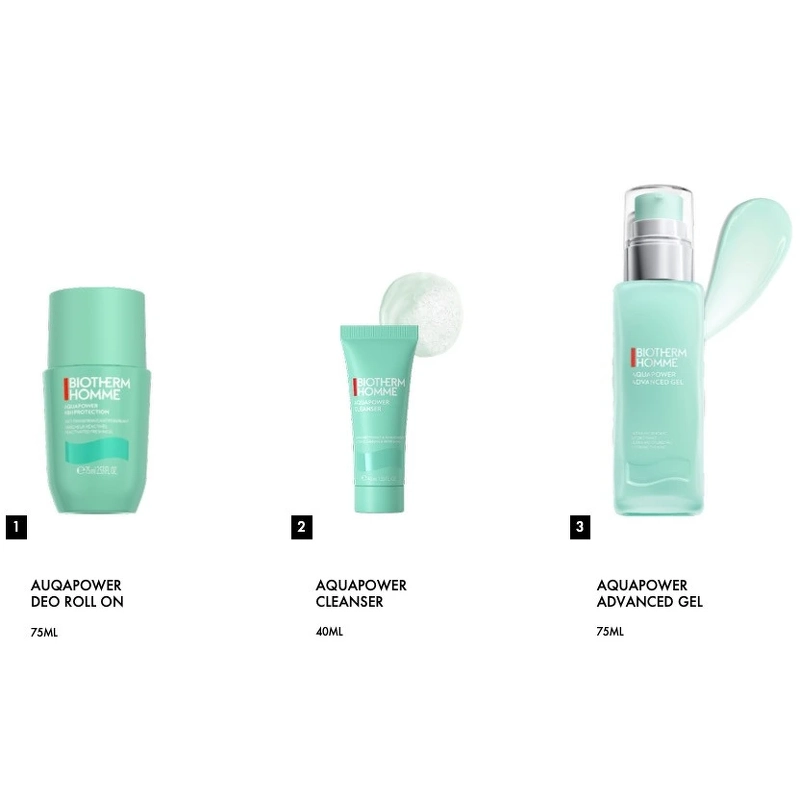 Das Biotherm Aquapower Geschenkset (Limited Edition) ist eine hochwirksame Geschenkbox für Männer. Biotherm Homme Aquapower Advanced Gel ist eine feuchtigkeitsspendende Tagescreme für Männer, die von jedem verwendet werden kann, unabhängig von Hauttyp und Alter. Sie enthält Biotherms patentierten Wirkstoff Life Plankton, der für seine beruhigenden Eigenschaften bekannt ist und aus Thermalquellen in Frankreich stammt. Aquapower ist ein speziell für Männer entwickeltes Feuchtigkeitsprodukt, das den Durst der Haut sofort löscht und ihre Barrierefunktion stärkt. Es verleiht der Haut einen sofortigen erfrischenden und geschmeidigen Effekt, was zu einem außergewöhnlich frischen Gefühl führt. Die Haut wird mit viel Feuchtigkeit und Nährstoffen versorgt und erhält einen neuen Glanz. Biotherm Homme Aquapower Cleanser ist ein feuchtigkeitsspendender Gesichtsreiniger für Männer, der die Haut effektiv reinigt und sie weich und bereit für die anschließende Rasur oder Cremepflege macht. Er kann täglich angewendet werden. Biotherm Homme Aquapower Ice Cooling Effect Antiperspirant ist ein frisches Antitranspirant für Männer mit langanhaltendem Schutz. Das Set enthält: – 1 Stk. Biotherm Aquapower Advanced Gel 75 ml – 1 Stk. Biotherm Aquapower Oligo-Thermal Gel Cleanser 40 ml – 1 Stk. Biotherm Aquapower Ice Cooling Effect Antiperspirant 75 ml.