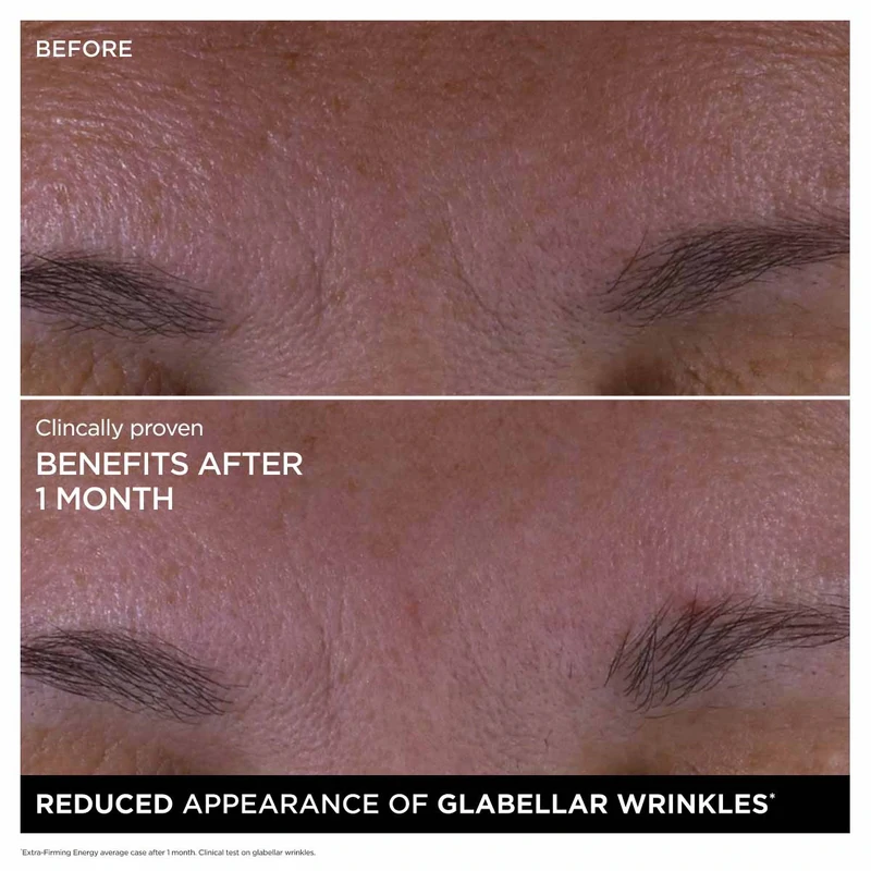 Clarins Extra-Firming Energy ist eine hochwirksame Tagescreme. Verabschieden Sie sich von müden Gesichtszügen! Extra-Firming Energy erweckt die Energie Ihres Gesichts. Die Forschungslabore von Clarins haben vier Schlüsselfaktoren für ein strahlendes Aussehen identifiziert, die in dieser Tagescreme gezielt behandelt werden: prallere Haut, Zornesfalten, Lachfalten und Erschlaffung der Haut. Die [COLLAGEN]³ TECHNOLOGY kombiniert drei hochwirksame Inhaltsstoffe zur Verbesserung der Hautfestigkeit: Kollagen-Polypeptid zur Anregung der Kollagenproduktion, Pekannussextrakt zum Schutz der Hautqualität und Bio-Mitracarpus-Extrakt zur Stärkung der Hautstruktur. Unser Star-Inhaltsstoff, Bio-Roter-Ginseng-Extrakt, lässt die Hautzellen atmen und verleiht ihnen neue Strahlkraft. Er trägt dazu bei, das strahlende Aussehen der Haut langfristig zu erhalten. Niacinamid sorgt für einen ebenmäßigen Teint. Die orangefarbene Textur verleiht sofort einen gesunden Glow. Extra-Firming Energy ist nachfüllbar und wiederverwendbar. Die Formel besteht zu 91 % aus natürlichen Inhaltsstoffen. *In-vitro-Test des Inhaltsstoffs: - Straffere Haut - Strahlendere Haut und ein sofortiger gesunder Teint - Die Haut wirkt vitalisiert - Aufgepolsterte Haut - Glättet feine Linien und Fältchen - Stärkt die Feuchtigkeitsbarriere der Haut - +29 % aufgepolsterte Haut - 21 % Hautelastizität - 16 % Zornesfalten - 10 % Lachfalten Wahrgenommene Wirksamkeit: - +33 % strahlende Haut - +23 %* Hautfestigkeit - +96 % Sauerstoffversorgung der Hautzellen für einen strahlenden Teint - Der Kollagengehalt steigt um +53 %* für straffere Haut. Klinischer Test an 35 Frauen nach 28 Tagen. *Selbstbewertung von 107 Frauen nach 7 Tagen. In-vitro-Test des Inhaltsstoffs. **Ex-vivo-Test an lichtgealterten Hautexplantaten zur Messung der Menge an hochwertigem, gut strukturiertem Kollagen. Vorteile: - Anti-Aging-Tagescreme - Sorgt für straffere und glattere Haut - Bekämpft Falten und schlaffe Haut - Enthält [COLLAGEN]³-Technologie - Mit rotem Ginseng und Niacinamid - Verleiht einen strahlenden Teint und gleicht den Hautton aus - Sorgt für einen sofortigen, gesunden Glow - 91 % natürliche Inhaltsstoffe - Nachfüllbare und umweltfreundliche Verpackung Anwendung:** - Morgens auf die gereinigte Haut auftragen - Gleichmäßig auf Gesicht und Hals verteilen - Sanft einmassieren - Augenpartie aussparen - Täglich als Tagescreme verwenden - Kann allein oder nach dem Serum verwendet werden
