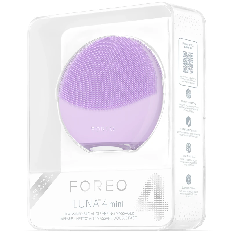 LUNA™ 4 mini – Die doppelseitige Reinigungsbürste für strahlend schöne Haut! Bringen Sie Ihre Hautpflege mit der LUNA™ 4 mini in nur einer Minute auf ein neues Level. Die Bürste reinigt porentief und entfernt effektiv Schmutz und überschüssiges Öl. Die T-sonic™-Pulsationen reinigen die Haut und peelen sie sanft, um die Aufnahmefähigkeit nachfolgender Pflegeprodukte zu verbessern. Die Vorderseite der LUNA™ 4 mini verfügt über feinere Silikonborsten für empfindliche Haut, während die Rückseite mit dickeren Borsten für die Tiefenreinigung öliger Gesichtspartien ausgestattet ist. Für ein optimales Ergebnis bietet die LUNA™ 4 mini außerdem einen 30-Sekunden-Glow-Boost-Modus – perfekt für eine schnelle und effektive Reinigung. Sie ist 100 % wasserdicht und mit einer Akkulaufzeit von bis zu 500 Anwendungen pro Ladung ideal für den täglichen Gebrauch. Vorteile: - Silikonbürste für alle Hauttypen - Entfernt sanft 99,5 % Schmutz, Öl, Schweiß und Make-up-Reste - Erfrischt die Haut und bereitet sie optimal auf die nachfolgende Pflege vor - Beugt Unreinheiten vor und verleiht einen natürlichen Glow in nur 30 Sekunden. Anwendung: Laden Sie die FOREO For You App herunter und folgen Sie den Anweisungen, um Ihr Gerät zu entsperren und zu registrieren. 1. Entfernen Sie Make-up-Reste. 2. Tragen Sie Ihren Reiniger auf Ihre LUNA™ oder direkt auf Ihr Gesicht auf. 3. Befeuchten Sie Ihre Haut, schalten Sie Ihre LUNA™ ein und wählen Sie zwischen Reinigungs- und Glow-Boost-Modus, indem Sie die Taste auf der Rückseite ein- oder zweimal drücken. 4. Reinigen Sie Ihr Gesicht mit kreisenden Bewegungen, bis sich Ihre LUNA™ automatisch ausschaltet. Dies signalisiert das Ende der Reinigungsroutine. Alternativ können Sie die Taste 3 Sekunden lang gedrückt halten, um die Reinigung vorzeitig zu beenden. Anschließend abspülen.