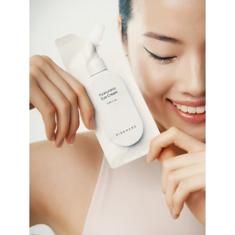 Die innovative Augencreme HIDEHERE Hyaluronic Eye Cream wurde mit Flüssigkristalltechnologie für maximale Absorption entwickelt. Die Formel kombiniert Peptide, Hyaluronsäure, Sheabutter und Macadamiaöl, um intensive Feuchtigkeit zu spenden, feine Linien zu mildern und Schwellungen zu reduzieren. Die leichte Textur verschmilzt schnell mit der zarten Haut, ohne sie zu beschweren, und verleiht einen frischen, strahlenden Teint. Geeignet für alle Hauttypen und kann allein oder als Teil der täglichen Hautpflege verwendet werden. Die umweltfreundliche und hygienische Verpackung schützt die Wirkstoffe, während der kompakte Beutel mit Schraubverschluss die Anwendung vereinfacht und die Creme ideal für unterwegs macht – ob im Kulturbeutel, beim Training oder auf Reisen. Vorteile: - Augencreme - Flüssigkristalltechnologie - Maximale Absorption für effektive Pflege - Spendet intensive Feuchtigkeit und reduziert feine Linien - Reduziert Schwellungen um die Augen - Leichte Textur, die schnell mit der Haut verschmilzt - Verleiht einen frischen, strahlenden Teint - Umweltfreundliche und hygienische Verpackung - Kompakter Beutel mit Schraubverschluss, einfach anzuwenden und ideal für unterwegs - Vegan und dermatologisch getestet Anwendung: - Auf die Augenpartie auftragen - Sanft mit den Fingerspitzen einklopfen, bis die Creme vollständig eingezogen ist