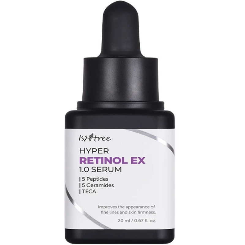 Brand: IsntreeIsntree Hyper Retinol EX 1.0 Serum ist ein Anti-Aging-Serum mit zwei Retinolarten, das feine Linien und Falten mindert. Es verbessert zudem ein ungleichmäßiges Hautbild, Rötungen, Pickel, Pigmentflecken, Aknenarben und Sonnenschäden. Das Serum ist für Personen ab 30 Jahren geeignet, jedoch profitieren alle Altersgruppen von der einzigartigen Wirkung von Retinol bei verschiedenen Hautproblemen. Die Formel basiert auf 0,1 % Retinol und 0,3 % Retinylpalmitat, beides Formen von Vitamin A. Zusätzlich enthält sie 0,6 % Bakuchiol, eine pflanzliche Alternative zu Retinol mit geringerem Reizrisiko. Zahlreiche wissenschaftliche Studien belegen die Wirksamkeit von Vitamin A unter anderem bei Anzeichen der Hautalterung, Falten, schlaffer Haut, Kollagenverlust und Pickeln. Vitamin A ist der wirksamste Wirkstoff zur Vorbeugung und Behandlung von Hautalterungserscheinungen. Gleichzeitig wirkt Vitamin A aufhellend und mindert die Sichtbarkeit von Altersflecken, Aknenarben und Sonnenschäden. Es zählt zu den natürlichsten und vielseitigsten Inhaltsstoffen für eine breite Palette von Hautproblemen und ist für die meisten Hauttypen geeignet. Das Serum ist zudem mit Kupferpeptiden angereichert, die die Kollagenproduktion der Haut anregen und zu einem glatten und jugendlichen Hautbild beitragen. Die Peptide können außerdem für weichere und straffere Haut sorgen und sind eine sanftere Anti-Aging-Komponente in Produkten mit Retinol. Die Inhaltsstoffliste enthält außerdem fünf verschiedene Ceramide, die das Risiko von Hautreizungen reduzieren und den Feuchtigkeitsgehalt der Haut bewahren. Ceramide sind Bestandteil der hauteigenen Barriere, und die Zufuhr von Ceramiden trägt zusätzlich zum Wiederaufbau und zur Stärkung dieser Barriere bei. HINWEIS: Vermeiden Sie die Anwendung von Vitamin A/Retinol während der Schwangerschaft oder Stillzeit. Vorteile: - Serum - Effektive Anti-Aging-Wirkung - Reduziert das Erscheinungsbild von feinen Linien, Falten, Pigmentflecken, Aknenarben und Sonnenschäden - Strafft die Haut und verfeinert das Hautbild - Hilft bei trockener Haut, Pickeln und Rötungen - Stärkt und regeneriert die Hautbarriere - Für alle Hauttypen geeignet - Geeignet ab 30 Jahren - Frei von künstlichen Duftstoffen, ätherischen Ölen, Silikonen und austrocknendem Alkohol Anwendung: - Abends nach Peeling und Gesichtswasser auf die gereinigte Haut auftragen - Einige Tropfen in das Gesicht einmassieren, dabei Augen- und Lippenpartie aussparen - Einziehen lassen - Anschließend die Nachtcreme auftragen - Beginnen Sie mit der Anwendung alle 2-3 Wochen. Tragen Sie das Serum die ersten 14 Tage abends auf, damit sich die Haut an Retinol gewöhnen kann. Steigern Sie die Anwendungshäufigkeit anschließend langsam auf jeden Abend. Um Hautreizungen zu vermeiden, können Sie die „Sandwich“-Methode anwenden: Tragen Sie zuerst die Nachtcreme, dann das Serum und zum Schluss noch einmal die Nachtcreme auf. Bei leichten Reizungen reduzieren Sie die Menge und Häufigkeit der Anwendung. Verschlimmern sich die Reizungen, beenden Sie die Anwendung des Serums und suchen Sie gegebenenfalls ärztlichen Rat. Verwenden Sie tagsüber Sonnenschutz mit mindestens Lichtschutzfaktor 30, solange Sie dieses Serum anwenden, da Retinol die Lichtempfindlichkeit der Haut erhöhen kann. Hinweis! Vermeiden Sie die Anwendung von Vitamin A/Retinol während der Schwangerschaft oder Stillzeit. Inhaltsstoffe: Wasser, Butylenglykol, Glycerin, Niacinamid, Dibutyladipat, Capryl-/Caprinsäuretriglycerid, Bakuchiol (0,6 %), Ammoniumacryloyldimethyltaurat/VP-Copolymer, 1,2-Hexandiol, hydriertes Lecithin, Betain, Hydroxyacetophenon, Retinylpalmitat (0,3 %), Natriumstearoylglutamat, Tocopherol, Retinol (0,1 %), Allantoin, Panthenol, Polysorbat 20, Adenosin, Cetearylalkohol, Dinatrium-EDTA, Stearinsäure, Dipropylenglykol, Hydroxypropylcyclodextrin, Polydextrose, Ceramid NP, Asiaticosid, Madecassinsäure, Asiatische Säure, Ceramid NS, Cholesterin, Phytosphingosin, Ferulasäure Ceramid AS, Ceramid AP, Kupfertripeptid-1, Acetylhexapeptid-8, Palmitoylpentapeptid-4, Palmitoyltetrapeptid-7, Palmitoyltripeptid-1, Ceramid EOP.
