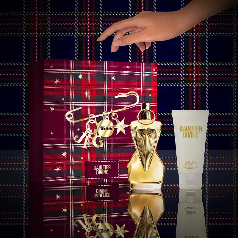 Finden Sie Mehr von dieser Marke:Das Jean Paul Gaultier Divine EDP Geschenkset (Limited Edition) ist eine fantastische Geschenkbox. In der glitzernden Magie der Feiertage erstrahlt das Gaultier Divine Geschenkset mit seinem blumigen Gourmand-Duft und trägt Gaultiers ikonisches Schottenkaromuster. Inmitten der schneebedeckten Bäume offenbart sich eine strahlende Eleganz. Unter den Schneeflocken hält die Nacht den Atem an, als sie ihren Auftritt hat. Goldenes Korsett, strahlende Haut und freie, furchtlose Weiblichkeit. Sie verführt mit einer Duftspur aus leuchtender Lilie, samtigem Baiser und einem Hauch Salz. In der Box erwartet Sie außerdem eine duftende Körperlotion, die die Nacht weiter funkeln lässt. Könnte ein Geschenk göttlicher sein? Das Set enthält: – 1 Stk. Jean Paul Gaultier Divine EDP 50 ml – 1 Stk. Jean Paul Gaultier Divine Lotion 75 ml