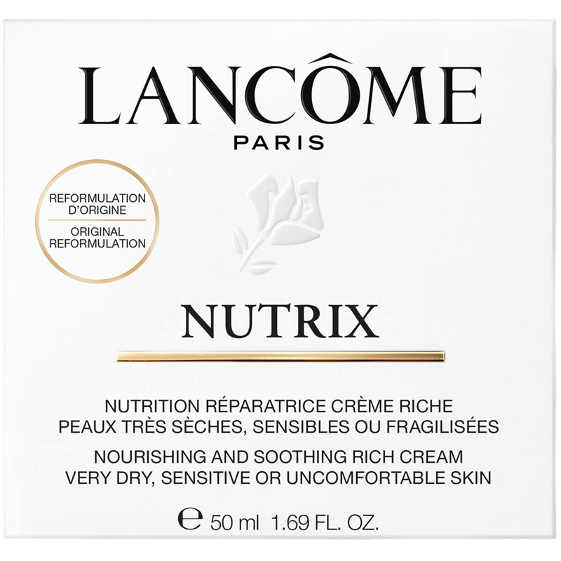 Die Lancôme Nutrix Visage Gesichtscreme ist ein legendäres Pflegeprodukt, das trockene, sehr trockene und empfindliche Haut intensiv mit Feuchtigkeit versorgt und ihr langanhaltendes Wohlbefinden schenkt. Die reichhaltige Creme, die ursprünglich 1936 entwickelt wurde, wird seit Generationen geschätzt und verwendet, um Spannungsgefühle zu lindern und die Haut geschmeidig zu machen. Die tiefenwirksame Formel stärkt die Hautbarriere, schützt vor Trockenheit und schädigt die Haut vor äußeren Einflüssen. Dank ihrer cremigen, reichhaltigen Textur, die fast mühelos mit der Haut verschmilzt, hüllt Nutrix Visage die Haut in ein wohliges Gefühl. Die Inhaltsstoffe gleichen Feuchtigkeitsverlust aus, lindern Irritationen und verbessern die Widerstandsfähigkeit der Haut. Das Ergebnis: sichtbar glattere, weichere und strahlendere Haut. Diese beruhigende Creme ist für empfindliche Haut geeignet und dermatologisch getestet. Sie ist ein unverzichtbarer Bestandteil der täglichen Pflegeroutine für alle, die sich intensive Pflege und langanhaltende Linderung von Trockenheit wünschen. Vorteile: - Die legendäre, pflegende Gesichtscreme von Lancôme - Intensive Feuchtigkeit und langanhaltendes Wohlbefinden - Geeignet für trockene, sehr trockene und empfindliche Haut - Lindert Spannungsgefühle, Irritationen und Irritationen - Stärkt die Hautbarriere - Cremige, reichhaltige Textur, zieht schnell ein - Macht die Haut glatter, weicher und strahlender - Dermatologisch getestet - Beliebt seit 1936 Anwendung: - Morgens und/oder abends auf die gereinigte Haut auftragen - Eine haselnussgroße Menge Creme entnehmen - Sanft mit kreisenden Bewegungen von der Gesichtsmitte nach außen einmassieren - So lange wiederholen, bis die Creme vollständig eingezogen ist, um optimales Wohlbefinden und Feuchtigkeit zu gewährleisten