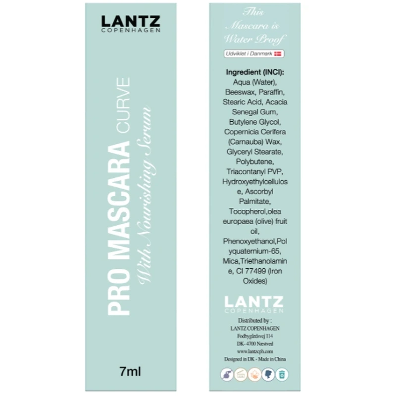 Finden Sie Mehr von dieser Marke:Lantz Cph Pro Mascara Curve – Black ist die neueste Ergänzung von Lantz, die Ihren Wimpern den zusätzlichen Schwung verleiht, den sie verdienen. Diese schwarze Wimperntusche wurde entwickelt, um Dramatik und Definition zu erzeugen, mit einer Kurvenbürste, die jede Wimper erfasst und sie perfekt kräuselt. Es enthält ein nährendes Wachstumsserum, das die Wimpern stärkt, und seine wasserfeste und wischfeste Formel sorgt für langanhaltende Haltbarkeit ohne Parfüm. Bienenwachs in der Formel sorgt für zusätzliche Haltbarkeit und Pflege. Vorteile: - Wimperntusche - Wimpernserum - Schwarz - Gebogener Bürstenkopf - Pflegt und stärkt die Wimpern - Wasserfest - Silikonbürste - Perfekt für empfindliche Augen - Parfümfrei - Für alle Hauttypen geeignet - Angereichert mit Bienenwachs - Nicht an Tieren getestet Verwendung: - Platzieren Sie die Bürste am Wimpernansatz - Folgen Sie der Wimpernkurve nach oben - Führen Sie eine leichte Zick-Zack-Bewegung aus - Tragen Sie die nächste Schicht auf, während die vorherige noch leicht feucht ist - Reinigen Sie die Silikonbürste regelmäßig Beim Entfernen die Wimperntusche: - Spülen Sie sie vorsichtig mit lauwarmem Wasser ab, verwenden Sie einen Reinigungsschwamm oder entfernen Sie die Wimperntusche unter der Dusche. - Normaler Make-up-Entferner funktioniert bei dieser Wimperntusche nicht. Befolgen Sie daher diese Methoden, um optimale Ergebnisse zu erzielen und Ihre Augen und Augen gut zu pflegen Wimpern