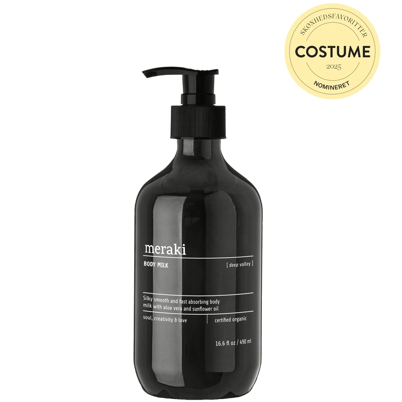 Meraki Body Milk – Deep Valley ist eine seidige Körpermilch, die schnell einzieht und ein duftendes Wohlgefühl verleiht. Die Formel mit Aloe Vera und Sonnenblumenöl versorgt die Haut mit feuchtigkeitsspendender und nährender Pflege. Gleichzeitig wird die Haut von Zitrusnoten aus Bergamotte und Orange, gemischt mit exotischem Ylang-Ylang, verwöhnt, während eine Herznote aus Eukalyptus und Minznoten für eine frische Dimension sorgt. Die leichte Konsistenz lässt sich leicht auf der Haut verteilen und zieht schnell ein. Dadurch ist sie auch ideal für die Anwendung durch Männer auf Körperbehaarung geeignet. Diese Körpermilch wird in einer praktischen Pumpflasche geliefert, die eine einfache Dosierung gewährleistet, und das schlichte, graue Design im skandinavischen Stil macht sie auch im Badezimmer zu einer schönen Erscheinung. Verwandeln Sie Ihr Badezimmer mit dieser luxuriösen Körpermilch in ein persönliches Spa und schaffen Sie sich einen Moment der Ruhe. Vorteile: - Körpermilch - Feuchtigkeitsspendende und nährende Pflege - Seidig weiche und leichte Textur - Zieht schnell ein - Gut für Frauen und Männer - Für alle Hauttypen - Frischer Duft - Schlichtes, graues Design im skandinavischen Stil - Praktische Pumpflasche - Inhaltsstoffe zu 99,8 % natürlichen Ursprungs - COSMOS-zertifiziert biologisch Anwendung: - Auf saubere und trockene Haut auftragen - In die Körperhaut einmassieren - Kann täglich oder nach Bedarf verwendet werden Inhaltsstoffliste: Aqua, Aloe Barbadensis Leaf Juice, Caprylic/Capric Triglyceride, Glycerin, Xanthan Gum, Helianthus Annuus Seed Oil, Butyrospermum Parkii Butter, Glyceryl Stearate, Sodium Stearoyl Lactylate, Sodium Levulinate, Potassium Sorbate, Tapioca Starch, Citric Acid, Sodium Gluconate, Tocopherol, Algin, Parfum, Limonene, Linalool, Citronellol, Citral, Eugenol. 99,8 % der Gesamtzutaten natürlichen Ursprungs. 22 % der gesamten Inhaltsstoffe sind aus kontrolliert biologischem Anbau.