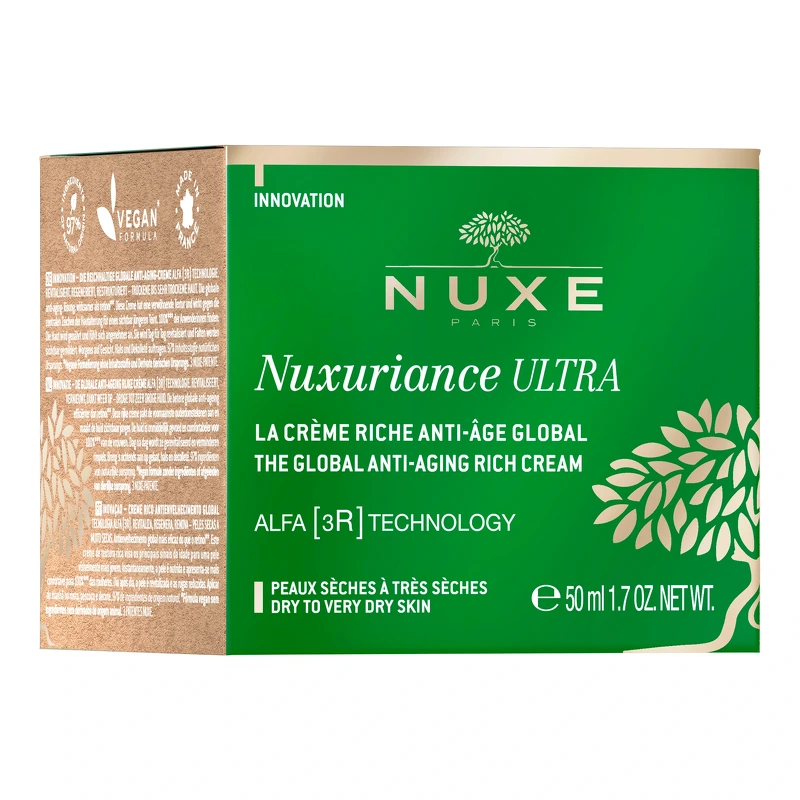 Die Nuxe Nuxuriance Ultra Rich Tagescreme ist eine umfassende Anti-Aging-Creme, die effektiver als Retinol wirkt und die wichtigsten Zeichen der Hautalterung sichtbar korrigiert. Die Haut wird sofort intensiv gepflegt und fühlt sich angenehmer an. Nach einem Monat: Die Haut wirkt praller. Selbst ausgeprägte Falten erscheinen gemildert und die Haut ist straffer. Die umfassende Anti-Aging-Wirkung wird durch einen einzigartigen, sinnlichen Duft, modern und elegant-feminin, ergänzt. Die reichhaltige und cremige Textur ist ideal für trockene bis sehr trockene Haut. Vorteile: - Reichhaltige Tagescreme - Anti-Aging-Pflege für trockene bis sehr trockene Haut - Reduziert Falten und Zeichen der Hautalterung - Spendet intensive Pflege und Feuchtigkeit - Macht die Haut praller und straffer - Hinterlässt ein weiches und angenehmes Hautgefühl Anwendung: - Morgens auf die gereinigte Haut auftragen - Auf Gesicht und Hals anwenden - Sanft einmassieren - Augenpartie aussparen - Kann nach dem Serum verwendet werden
