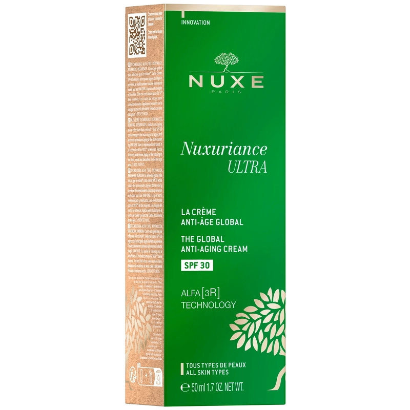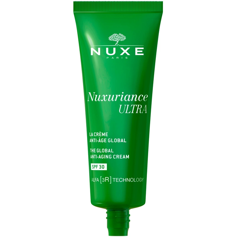 Die Nuxe Nuxuriance Ultra SPF30 Tagescreme ist eine Tagescreme mit Lichtschutzfaktor 30, die die wichtigsten Zeichen der Hautalterung sichtbar korrigiert und vor UVA- und UVB-Strahlung schützt, um vorzeitiger Hautalterung und Pigmentflecken vorzubeugen. Die Haut wirkt sofort straffer, glatter und praller. Nach einem Monat: Die Haut sieht sichtbar jünger aus, Falten werden gemildert und die Haut wirkt fester und strahlender. Der umfassende Anti-Aging-Effekt wird durch einen einzigartigen, sinnlichen Duft, modern und elegant, unterstrichen. Die universelle Textur ist für alle Hauttypen geeignet. Vorteile: - Tagescreme mit Lichtschutzfaktor 30 - Anti-Aging-Pflege gegen Falten und Pigmentflecken - Schutz vor UVA- und UVB-Strahlen - Sorgt für eine festere und vollere Haut - Gleicht den Hautton aus und glättet die Haut - Für alle Hauttypen geeignet Anwendung: - Morgens auf die gereinigte Haut auftragen - Auf Gesicht und Hals anwenden - Sanft einmassieren - Augenpartie aussparen - Nach Sonneneinstrahlung bei Bedarf erneut auftragen
