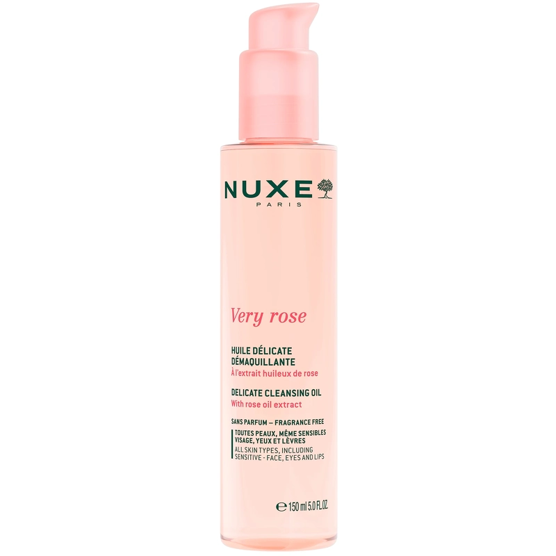 Das Nuxe Very Rose Delicate Cleansing Oil ist ein Reinigungsöl, das selbst hartnäckiges und wasserfestes Make-up effektiv entfernt. Dieses sanfte Öl reinigt Gesicht, Augen und Lippen gründlich und entfernt Make-up. Es wurde für alle Hauttypen, auch für empfindliche Haut, entwickelt und sorgt mit seiner zarten Formel nach jeder Anwendung für unwiderstehlich weiche, geschmeidige und angenehme Haut. Angereichert mit Rosenöl-Extrakt und bestehend aus 99 % natürlichen Inhaltsstoffen, lässt es sich dank seiner seidigen, parfümfreien Textur leicht abspülen und hinterlässt weder einen Fettfilm auf der Haut noch Schlieren vor den Augen – für ein wahrhaft beruhigendes Hautgefühl. Vorteile: - Reinigungsöl - Entfernt Make-up, auch wasserfestes - Reinigt Gesicht, Augen und Lippen - Für empfindliche Haut geeignet - Enthält Rosenöl-Extrakt - 99 % natürliche Inhaltsstoffe - Hinterlässt ein weiches Hautgefühl ohne Fettfilm Anwendung: - Auf die trockene Haut auftragen - In Gesicht, Augen und Lippen einmassieren - Mit etwas Wasser emulgieren - Gründlich mit Wasser abspülen - Morgens und/oder abends anwenden