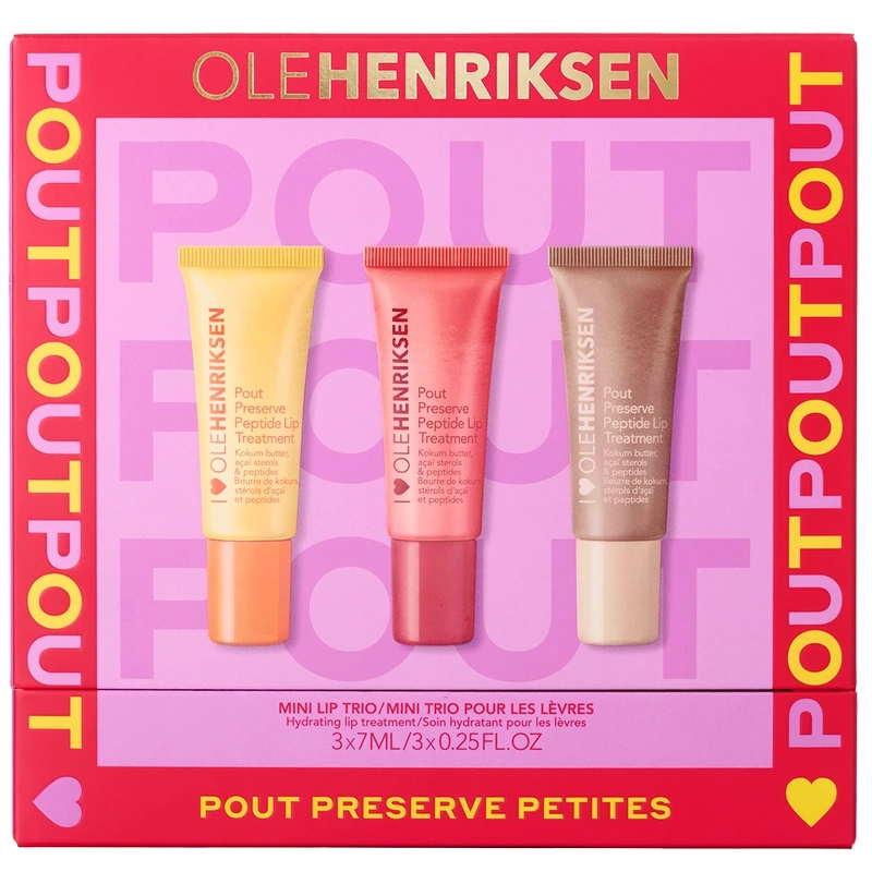Das Ole Henriksen Mini Lip Trio Geschenkset (Limited Edition) ist ein Miniset in limitierter Auflage mit drei meistverkauften Farbtönen des Pout Preserve Peptide Lip Treatment – einer pflegenden Lippenpflege, die die Lippen in nur einer Woche mit Feuchtigkeit versorgt und aufpolstert. Tragen Sie einen Strich dieser feuchtigkeitsspendenden Favoriten in Reisegröße auf: Citrus Sunshine, Strawberry Sorbet und Crème Brûlée. Angereichert mit lippenaktivierenden Peptiden und pflegender Butter für weichere, geschmeidigere Lippen. Verbraucherergebnisse für alle drei Varianten: -97 % sagten, die Lippen sähen definierter aus -95 % sagten, trockene, rissige Lippen seien gerettet worden -90 % sagten, die Lippen fühlten sich geschmeidiger an Set enthält: - 1 Stk. Ole Henriksen Glimmer Pout Preserve Peptide Lip Treatment – Erdbeersorbet – 1 Stk. Ole Henriksen Glimmer Pout Preserve Peptide Lip Treatment – Citrus Sunshine – 1 Stk. Ole Henriksen Glimmer Pout Preserve Peptide Lip Treatment – Crême Brûlee