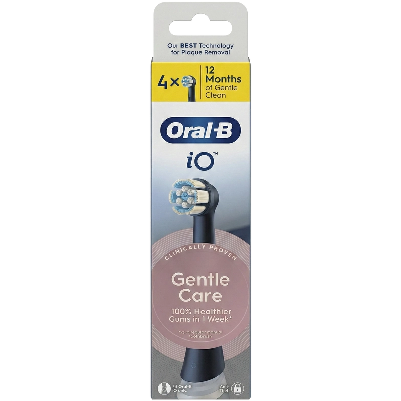 Oral-B iO Gentle Care Nachfüllbürsten (4 Stück, Schwarz) sind ideal für alle, die eine besonders sanfte und dennoch effektive Zahnreinigung wünschen. Die weichen, fein geformten Borsten sorgen für ein angenehmes Putzgefühl und schonen das Zahnfleisch, ohne die Reinigungsleistung zu beeinträchtigen. Die Borsten wurden speziell für empfindliches Zahnfleisch entwickelt und reduzieren das Risiko von Irritationen, während sie gleichzeitig Plaque und Ablagerungen effektiv lösen. Die abgerundete Form macht das Putzen angenehmer, selbst bei empfindlichem Zahnfleisch. Dank des abgewinkelten Designs erreichen Sie auch schwer zugängliche Stellen, an denen sich Plaque häufig ansammelt. Das Ergebnis: ein sauberes Mundgefühl und ein frisches Mundgefühl nach jedem Putzen. Diese Bürstenköpfe wurden speziell für Oral-B iO elektrische Zahnbürsten entwickelt und gewährleisten in Kombination mit der fortschrittlichen Technologie der iO optimale Ergebnisse. Um die hohe Reinigungswirkung zu erhalten, empfiehlt Oral-B, den Bürstenkopf alle drei Monate zu wechseln. Details: - Bürstenköpfe - 4 Stück - Entwickelt für empfindliches Zahnfleisch - Effektive Plaqueentfernung ohne Irritationen - Weiche, abgewinkelte Borsten für eine sanfte Reinigung - Optimiert für schwer erreichbare Stellen - Kompatibel mit allen Oral-B iO elektrischen Zahnbürsten - Empfohlener Austausch alle 3 Monate