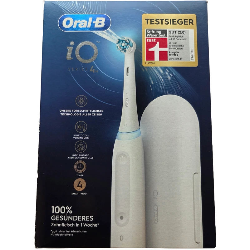 Die Oral-B iO Series 4 mit Reiseetui – Weiß ist eine hochmoderne Zahnbürste mit der bahnbrechenden iO-Technologie von Oral-B. Sie bietet nicht nur eine überragende Reinigung, sondern sorgt auch dafür, dass Ihre Mundhygiene den Empfehlungen von Zahnärzten entspricht. Die Oral-B iO 4 setzt neue Maßstäbe für elektrische Zahnbürsten, indem sie mikrovibrierende Borsten mit dem bewährten runden Bürstenkopf kombiniert. Dadurch werden bis zu 100 % mehr Plaque entfernt als mit Handzahnbürsten. Lieferumfang: – 1 x Oral-B iO Series 4 Elektrische Zahnbürste (Weiß) – 1 x Ladegerät – 1 x Ultimate Clean Bürstenkopf – 1 x Reiseetui
