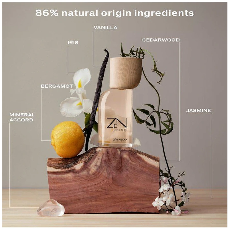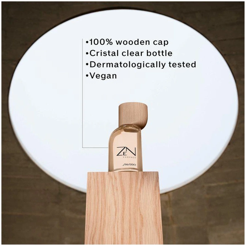 Shiseido Zen EDP – Blühende und moschusartige Harmonie. Ein blumig-moschusartiger Duft, inspiriert von der stillen Schönheit von Zen-Gärten – kreiert als beruhigendes Ritual, das innere Balance und Harmonie fördert. Zen Essence entfaltet sich mit einem einhüllenden blumig-moschusartigen Akkord, in dem spritzige Bergamotte und leuchtender Jasmin auf ein Herz aus feiner Iris treffen, umhüllt von mineralischen Moschusnoten. Vanille und warmes Zedernholz verschmelzen mit dem Duft und hinterlassen eine wohltuende Spur, die Sie den ganzen Tag begleitet. Eine moderne und harmonische Signatur, die die Sinne beruhigt. Ein blumig-moschusartiges Ritual für innere Ruhe. Kopfnote: Spritzige Bergamotte und leuchtender Jasmin schenken einen Hauch frischer Klarheit. Herznote: Ein zartes Irisbouquet verschmilzt mit mineralischen Moschusnoten zu einem weichen, einhüllenden Gefühl. Basisnote: Vanille und warmes Zedernholz sorgen für einen beruhigenden und sinnlichen Ausklang. Der Flakon präsentiert sich in elegantem Design mit einem Verschluss aus nachhaltig gewonnenem Holz. Für ein lang anhaltendes Gefühl der Ruhe auf die Pulspunkte auftragen, um eine bessere Verteilung und Haltbarkeit zu gewährleisten.