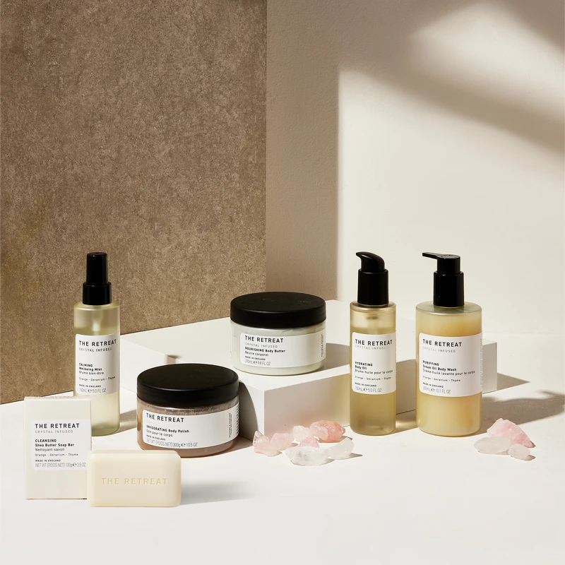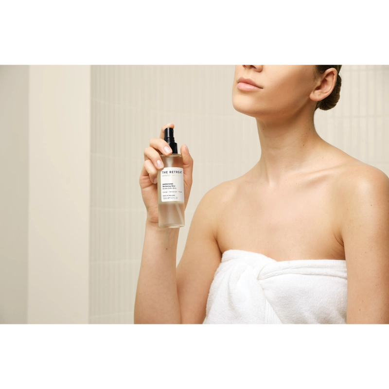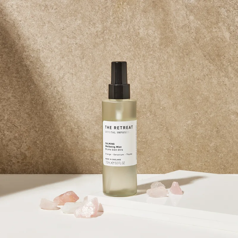 Das Retreat Calming Wellbeing Mist ist ein Körperspray mit einer Mischung aus Rosen- und Bergkristall sowie einem zarten Duft aus aromatherapeutischen ätherischen Ölen, das Körper und Geist verwöhnt. Angereichert mit beruhigender Kamille und Seerosenextrakt. Probieren Sie es und finden Sie Ihr inneres Gleichgewicht wieder. Vorteile: - Körperspray - Enthält eine Mischung aus Rosen- und Bergkristall - Zartes, aromatherapeutisches Duftprofil mit ätherischen Ölen - Beruhigende und pflegende Wirkung für mehr Wohlbefinden - Mit wohltuenden Pflanzenextrakten - Fördert innere Ruhe und Ausgeglichenheit - Geeignet für die tägliche Anwendung und Entspannung - Leichter, frischer Nebel zur Erfrischung Anwendung: - Leicht auf die Haut sprühen - Nach dem Baden für ein frisches Gefühl verwenden - Für Ruhe und Entspannung verwenden - Kann tagsüber zur Erfrischung verwendet werden - In die Luft sprühen und durch den Nebel gehen zur Entspannung Inhaltsstoffe: Aqua (Wasser), Alcohol Denat., Polysorbate 20, Glycerin, Phenoxyethanol, Parfum (Duftstoff), Natriumhydroxid, Dipropylenglykol, Natriumpalmitoylprolin, Nymphaea Alba (Seerosenwurzelextrakt), Chamomilla Recutita (Kamillenblütenextrakt), Natriumbenzoat, Quarzpulver, Xanthangummi, Kaliumsorbat, Milchsäure Linalool, Linalylacetat, Benzylalkohol, Citronellol, Limonen, Neroliöl (Citrus Aurantium), Tetramethylacetyloctahydronaphthaline, Geraniol, Geranienöl (Pelargonium graveolens), Lavendelöl/-extrakt, Menthol, Pfefferminzöl (Mentha piperita), Kampfer, Eukalyptusöl (Eucalyptus globulus), Pinen, Beta-Caryophyllen, Grünes Minzöl (Mentha viridis), Carvon, Patchouliöl (Pogostemon cablin)