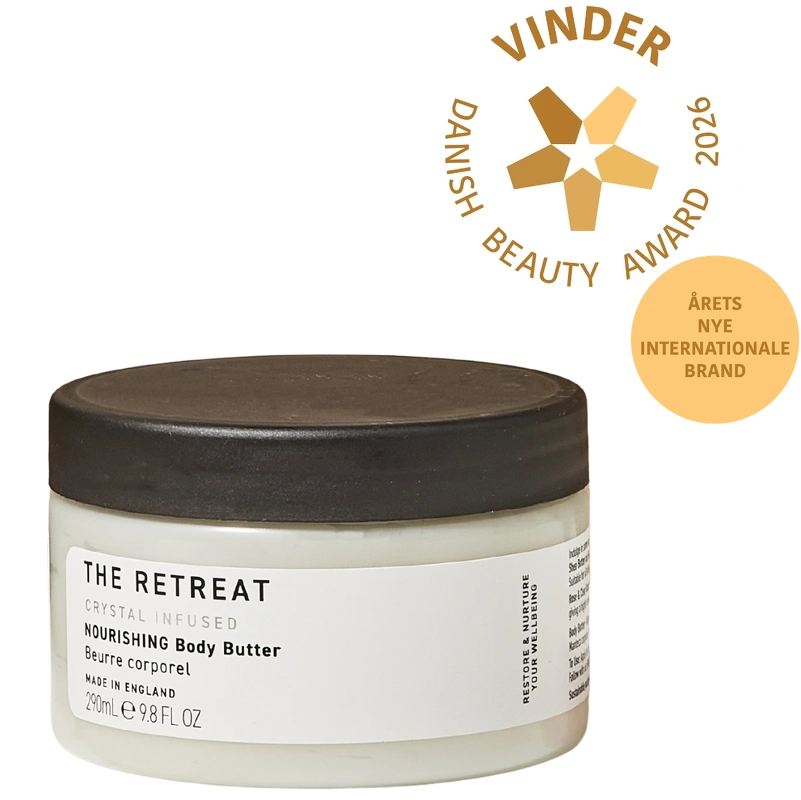 Die Retreat Nourishing Body Butter ist eine luxuriöse und sinnliche Körperbutter, die Rosenextrakt und Bergkristall in einer einzigartigen Formel vereint. Mit 97 % natürlichen Inhaltsstoffen bietet sie ein reines und pflegendes Pflegeerlebnis, das die Haut ausgleicht und erneuert. Angereichert mit beruhigendem Kamillenextrakt, intensiv pflegender Sheabutter und nährendem Sanddornöl, das von Natur aus reich an Omega-7-Fettsäuren und Vitamin A ist, wirkt sie harmonisch zusammen, um die Haut tiefenwirksam zu nähren, ihre Geschmeidigkeit zu verbessern und sie bis zu 24 Stunden lang mit Feuchtigkeit zu versorgen. Das Ergebnis ist seidig weiche, gepflegte Haut mit einem Gefühl von Ruhe, Feuchtigkeit und einem strahlenden Teint. Vorteile: - Körperbutter - 97 % natürliche Inhaltsstoffe - Pflegende Körperbutter für die tägliche Pflege - Spendet der Haut bis zu 24 Stunden Feuchtigkeit - Sorgt für intensive Geschmeidigkeit und Weichheit - Wohltuend und angenehm auf der Haut - Luxuriöse und sinnliche Textur - Hinterlässt ein gepflegtes und angenehmes Hautgefühl Anwendung: - Eine angemessene Menge auf die gereinigte, trockene Haut auftragen - Mit sanften, kreisenden Bewegungen einmassieren - Besonders trockene Stellen wie Ellbogen und Knie pflegen - Vor dem Anziehen vollständig einziehen lassen - Täglich anwenden für optimale Feuchtigkeit und Pflege Inhaltsstoffe: Aqua (Wasser), Glycerin, Cetearylalkohol, Glycerylstearat SE, Butyrospermum Parkii (Shea) Butter, Caprylic/Capric Triglyceride, Helianthus Annuus (Sonnenblumen) Samenöl, Carbomer, Parfum (Duftstoff), Natriumstearoylglutamat, Ethylhexylglycerin, Natriumhydroxid, Sanddorn Sanddornfruchtöl, Kamillenblütenextrakt, Natriumbenzoat, Quarzpulver, Xanthangummi, Tocopherol, Kaliumsorbat, Milchsäure, Propandiol, Polypodium vulgare Rhizomextrakt, Cetraria islandica (Islandmoos) Thallusextrakt, Sphagnum magellanicum Extrakt, Zitronensäure, Linalool, Linalylacetat, Benzylalkohol, Citronellol, Limonen, Citrus aurantium (Neroli) Schalenöl, Tetramethylacetyloctahydronaphthaline, Geraniol, Pelargonium graveolens (Geranie) Blütenöl, Lavendelöl/Extrakt, Menthol, Mentha piperita (Pfefferminze) Öl, Kampfer, Eucalyptus globulus Öl, Pinen, Beta-Caryophyllen, Mentha viridis (Grüne Minze) Blattöl, Carvon, Pogostemon cablin (Patchouli) Öl