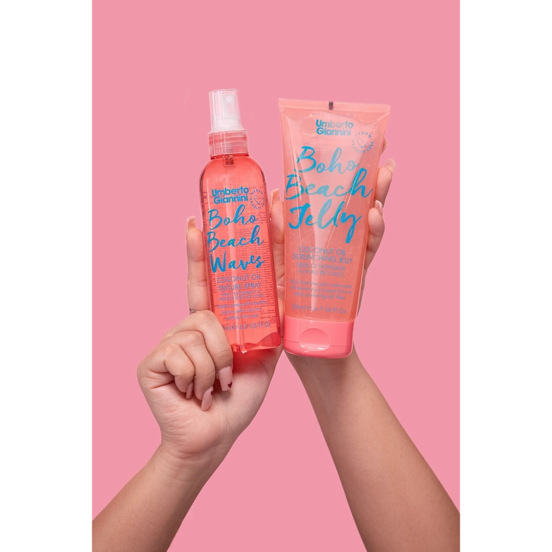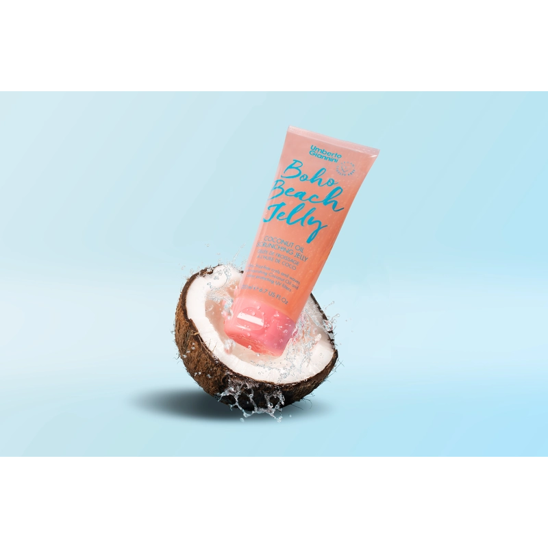 Umberto Gianinni Boho Beach Scrunching Jelly ist ein einfach zu stylendes Haargel, das Frizz verhindert und für weiches, natürlich wirkendes Beach-Haar sorgt. Das Gel enthält pflegendes Kokosöl und UV-Filter, die das Haar schützen und das Verblassen der Haarfarbe verhindern. Das Haar erhält glänzende Wellen und Locken, ohne sich durch Salzwasser trocken und spröde anzufühlen. Boho Beach Scrunching Jelly duftet dezent nach Kokosnuss und Mandarine. Ideal für alle, die sich Beach-Haar wünschen. Geeignet für alle Haartypen, auch für coloriertes, chemisch behandeltes Haar und Haarverlängerungen. Vorteile: - Leichtes Haargel - Für einen natürlichen Beach-Look - Bekämpft Frizz und macht das Haar weich - Kreiert glänzende Wellen und Locken - Kein trockenes oder klebriges Gefühl - Schützt das Haar und beugt dem Verblassen der Haarfarbe vor - Pflegt das Haar - Milder tropischer Duft - Für alle Haartypen geeignet - Auch für coloriertes und chemisch behandeltes Haar geeignet - Kann mit Haarverlängerungen verwendet werden - Vegan Anwendung: - Gleichmäßig vom Ansatz bis in die Spitzen ins handtuchtrockene Haar einarbeiten - An der Luft trocknen lassen oder mit Hitze stylen - Das Haar kneten und drehen, um die Locken zu definieren und Volumen zu erzeugen - Ideal für das Styling über Nacht: Das Haar vor dem Schlafengehen eindrehen oder flechten und mit perfektem Boho-Chic-Haar aufwachen