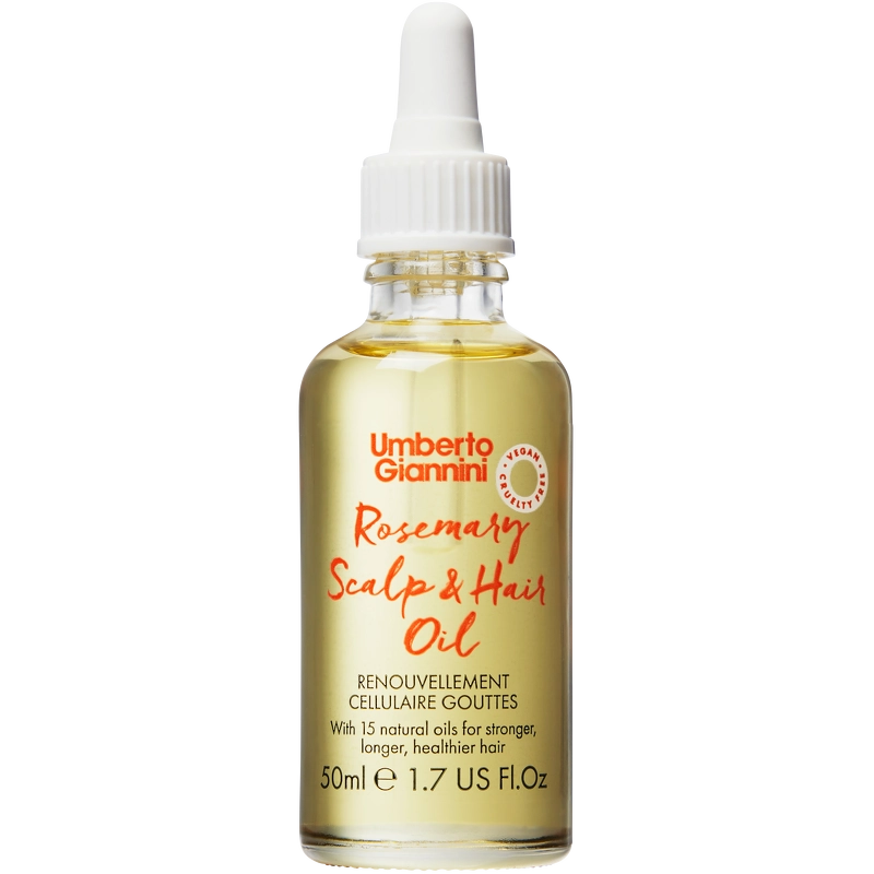 Umberto Gianinni Rosmarin Kopfhaut- & Haaröl ist ein pflegendes Haaröl, das das Wachstum von kräftigerem, gesünderem und glänzenderem Haar anregt. Es enthält 16 ätherische Öle, darunter Rosmarin, Rizinus und Pfefferminze, die das Haar reparieren und schützen. Das Öl nährt die Kopfhaut und stimuliert die Haarfollikel für gesünderes und kräftigeres Haarwachstum. Ein wahres Wundermittel, das das Haar von innen heraus nährt, die Gesundheit der Kopfhaut verbessert und für längeres und glänzenderes Haar sorgt. Es zieht schnell in Haar und Kopfhaut ein, ohne einen fettigen Film zu hinterlassen. Die spezielle Formel schützt das Haar vor Umwelteinflüssen und Hitze bis 220 °C. Das Rosmarin Kopfhaut- & Haaröl duftet dezent nach Rosmarin, Eukalyptus und Pfefferminze. Vorteile: - Pflegendes Haaröl für Haar und Kopfhaut - Stärkt das Haar und sorgt für gesünderes Haar - Verbessert den Glanz und die Gesundheit der Kopfhaut - Repariert und schützt das Haar - Zieht schnell ein, ohne das Haar zu fetten - Schützt vor Umwelteinflüssen und Hitze bis 220 °C - Milder Duft nach Rosmarin, Eukalyptus und Pfefferminze - Fördert das Haarwachstum und stimuliert die Haarfollikel - Geeignet für alle Haartypen, auch für coloriertes und chemisch behandeltes Haar - Silikonfrei - Vegan Anwendung: - Kopfhautbehandlung: - Teilen Sie das Haar in 4 Partien. Tragen Sie eine kleine Menge Öl auf die Kopfhaut auf, massieren Sie es mit den Fingern ein und kämmen Sie es bis in die Haarspitzen. - Tägliche Anwendung: Tragen Sie eine kleine Menge auf die Kopfhaut auf und kämmen Sie es bis in die Spitzen. Die Formel zieht vollständig ein und hinterlässt keine Rückstände. - Pflege und Behandlung von Spliss: Tragen Sie das Öl auf die Spitzen auf und verteilen Sie es im Haar. 10 Minuten einwirken lassen. Ausspülen und anschließend mit Shampoo waschen.