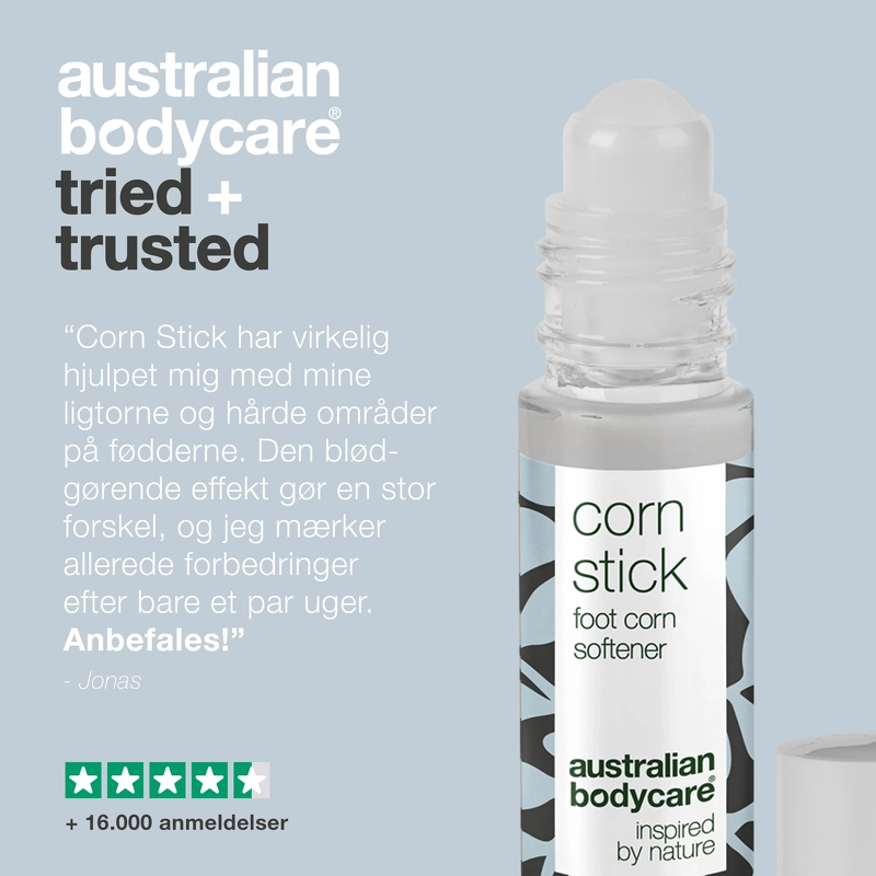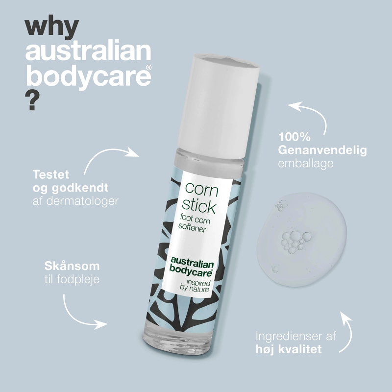 Australian Bodycare Corn Stick is de redding voor u die doodgaat met pijnlijke doornen. Deze kleine roll-on is ongelooflijk handig en maakt het ongelooflijk eenvoudig om het probleem onder ogen te zien. Het bevat een combinatie van salicylzuur en Tea Tree Oil die de harde huid afbreekt en de doornen oplost. Bovendien verzacht en reinigt de formule ook de huid tegen onzuiverheden. Voordelen: - Liggornne-stok - Bevat salicylzuur en Tea Tree Oil - Ontbindt een harde huid - Lost lichte doornen op - Werkt verzachtend - Reinigt de huid van onzuiverheden - Zonder parabenen - Veganistisch Gebruik : - Tot 4 keer per dag op maïzena aanbrengen - Voor gebruik is het voordelig om voorzichtig met een puimsteen over de maïzena te wrijven Ingrediënten: Limnanthes Alba-zaadolie, Prunus Armeniaca-kernelolie, Prunus Amygdalus Dulcis-olie, Isostearyl-isostearaat, Macadamia Ternifolia-zaadolie, Shea Butter Ethylesters, Salicylzuur, Dibutyladipaat, linolzuur, Melaleuca Alternifolia bladolie, Salicliclic , Tocoferol, Glycerine Soja Sterolen, Panthenol, Linoleenzuur, Oliezuur, Natriumcitraat, Citroenzuur, Aqua, Limoneen, Linalool