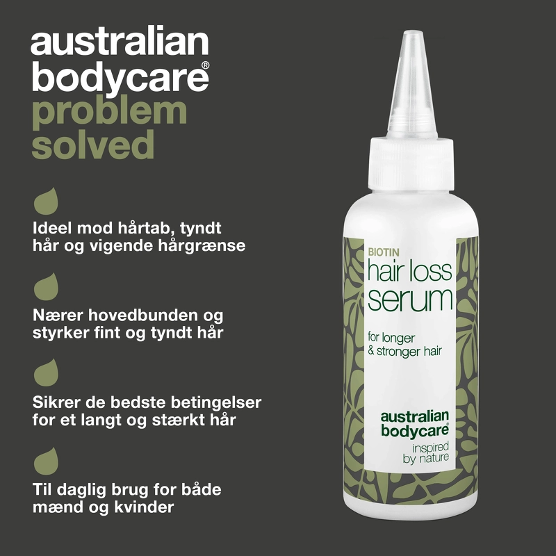 Australian Bodycare Hair Loss Serum is een product voor mensen die na verloop van tijd last hebben van haaruitval. Veel mensen zien na het douchen meer haar in de gootsteen, maar gelukkig is er een oplossing: de Hair Loss-serie van Australian Bodycare. Het serum bevat het natuurlijk actieve ingrediënt Capilia Longa, waarvan klinisch is aangetoond dat het haaruitval tegengaat. Samen met biotine, dat het haar en de hoofdhuid versterkt, biedt het serum optimale omstandigheden voor dikker en gezonder haar. Het serum maakt deel uit van een 3-stappensysteem, dat ook Australian Bodycare Hair Loss Wash en Australian Bodycare Hair Loss Spray omvat. Het wordt aanbevolen om alle drie de producten dagelijks te gebruiken voor het beste resultaat. Voordelen: - Serum tegen haaruitval - Versterkt de hoofdhuid en bevordert een gezonde haargroei - Biedt de beste omstandigheden voor dik en sterk haar - Niet uitspoelen uit het haar - Veganistisch Toepassing: - Spray het serum rechtstreeks op de hoofdhuid - Niet uitspoelen - Gebruik het serum indien nodig 's avonds zodat het 's nachts kan inwerken - Aanbevolen om te gebruiken in combinatie met Hair Loss Wash en Hair Loss Spray Ingrediëntenlijst: Aqua/Water, Alcohol Denat., Butyleenglycol, Curcuma Longa (Kurkuma) Callus Conditioned Media, Niacinamide, Phenoxyethanol, Glycerine, Panthenol, Polyacrylaat Crosspolymeer-6, Cafeïne, Biotine, Caprylylglycol, Natriumhydroxide, Gluconolacton, Citroenzuur, Tasmannia Lanceolata Fruit/Blad Extract, Natriumbenzoaat, Terminalia Ferdinandiana (Kakadu Pruim) Fruit Extract, Calcium Gluconaat.