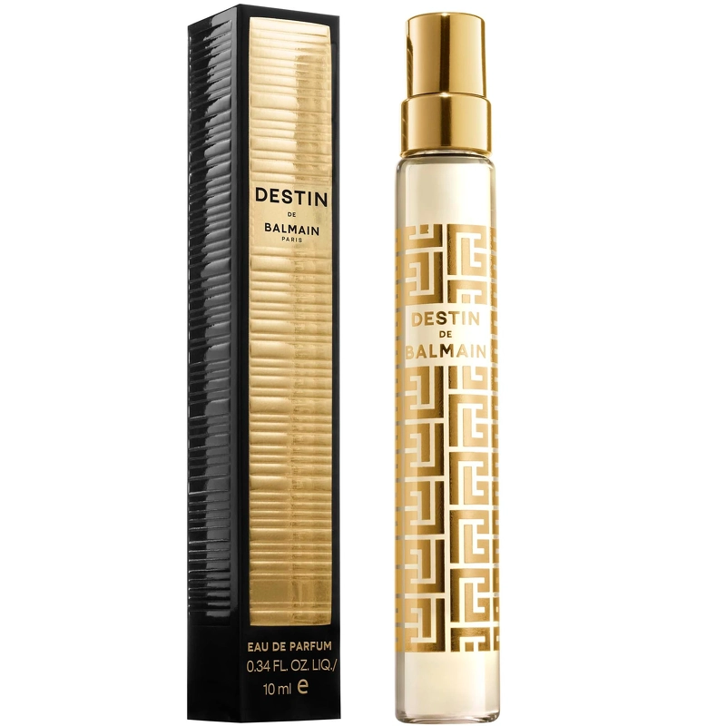 Balmain Fragrance Destin EDP is een super exclusieve geur die perfect in je handtas past. Ontdek Destin de Balmain – een gedurfde, fruitig-bloemige geur die de onafhankelijke, jeugdige energie van de Balmain-spirit vastlegt. Een stralende explosie van sappige aardbei vangt de opwinding van een nieuw begin. Verfijnd en zelfverzekerd verweven pioenroosnoten zich met de romige warmte van sandelhout tot een gedurfde fruitig-bloemige geur die het kiezen van je eigen pad en het leven van je bestemming viert. De gedurfde en vrouwelijke geur belichaamt Balmains savoir-faire en moderne puls. De geur opent met een flits van neonkleurige, rijpe aardbei. Het levendige fruit ontketent een vrolijke, optimistische energie die samenspeelt met de kruidige pepernoten van rozenbottel. De rozennuances van de pioenroos onthullen onverwachte, romige lychee-facetten. Het bloemige karakter van de geur wordt verdiept met een lelieakkoord. De delicate groene nuances en het intense kruidige akkoord van Akigalawood™ versmelten met sandelhout en zachte patchouli voor een stralend houtachtig effect. De briljante, muskusachtige "tweede huid"-geur van Ambrexolide™ verankert de compositie in een onweerstaanbare en onvergetelijke sensuele warmte. Destin de Balmain is een gedeelde reis van passie en oneindige mogelijkheden die hen verenigt die hun bestemming zoeken. Alles komt samen in het labyrint – een plek waar ogen elkaar ontmoeten, harten klikken en handen zich verenigen in het symbolische Balmain-slot.