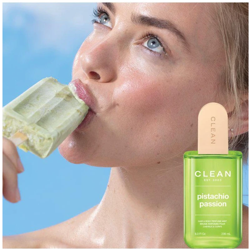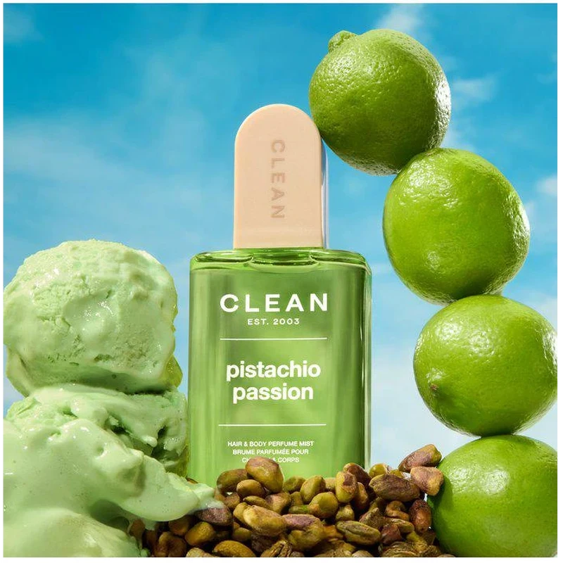 De Clean Pistachio Passion Hair & Body Perfume Mist combineert romigheid met sprankeling – een geur die aanvoelt als een klein geheim genot dat je met niemand hoeft te delen. De geur opent met zachte pistache, een vleugje warme rum en sprankelende bergamot. In het hart komen iris, ceder en jasmijn samen in een fluweelzachte, boterachtige warmte. De basis rondt de geur af met amber, tonkaboon en eikenmos, die een zacht gourmandkarakter geven, net zo verslavend als je favoriete dessert. Voor een extra romige, warme en zoete combinatie, gebruik je de mist in combinatie met Whipped Vanilla. De Pistachio Passion Hair & Body Perfume Mist is verrijkt met HydroCrown™ – een duurzaam, hydraterend ingrediënt gemaakt van gerecyclede ananasbladeren. Het helpt vocht vast te houden in zowel huid als haar en vermindert pluizig haar. Een zijdezachte mist die net zo lekker ruikt als verfrissend is, voor een zachte, zongebruinde gloed het hele jaar door. Topnoten: Pistache, rum, bergamot Hartnoten: Iris, ceder, jasmijn Basisnoten: Amber, tonkaboon, eikenmos Voordelen: - Geurmist voor lichaam en haar - Romig, warm en onweerstaanbaar zoet - Geurfamilie: Warm & Zoet Gourmand - Veganistisch Gebruik:
