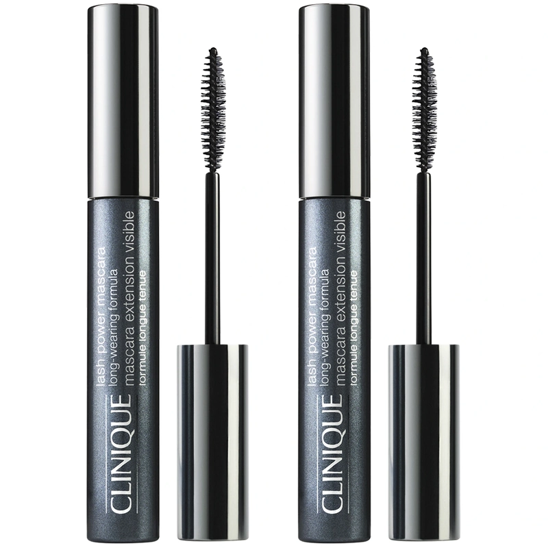 De Clinique Lash Power Mascara Duo Gift Set is een fantastische set met 2 Lash Power mascara's. Clinique Lash Power Mascara is een geweldige en extreem duurzame mascara die je wimpers verlengt. Deze mascara belooft je wimpers 24 uur lang prachtig te houden, zonder uit te lopen of te vlekken. Het speciale borsteltje met synthetische haartjes zorgt voor mooie, lange wimpers en verlengt zelfs de kortste wimperhaartjes. Eén veeg en je wimpers zijn bestand tegen regen, zweet, vocht en tranen - perfect voor wisselvallig weer. De set bevat: - 2 stuks Clinique Lash Power Mascara 6 ml - Black Onyx