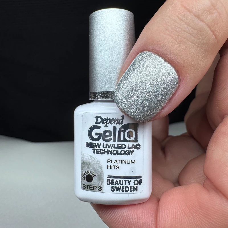 Depend Cosmetic Gel iQ Polish Stap 3 - Platinum Hits is een heerlijke gelnagellak die gebruikt kan worden als stap 3 van de Depend Gel iQ nagellakbehandeling. Breng de lak in een dunne laag aan en laat deze 30 seconden uitharden onder de Gel iQ UV/LED-lamp, twee keer voor een optimaal resultaat. De Depend Gel iQ nagellakbehandeling is snel en eenvoudig aan te brengen en geeft een superglanzend resultaat met een vollere finish dan gewone nagellak. De behandeling vindt plaats in 5 eenvoudige stappen met de volgende producten: - Stap 1: Depend Gel iQ Pre-Cleanser - Stap 2: Depend Gel iQ Base Coat - Stap 3: Depend Gel iQ Polish in uw gewenste kleur - Stap 4: Depend Gel iQ Top Coat - Stap 5: Depend Gel iQ High Shine Cleanser - Gel iQ UV/LED-lamp voor het uitharden na elke toepassing van basislaag, nagellak en toplaag (kan kan worden gekocht in een starterskit hier) U hoeft uw natuurlijke nagels niet voor te bereiden met vijlen of te behandelen met een sterke primer, wat de kwaliteit van uw nagels kan verminderen. Gel iQ heeft slechts een lichte reiniging nodig met een milde Pre-Cleanser voordat u uw nagellakbehandeling uitvoert. De Gel iQ UV/LED-lamp is speciaal ontwikkeld met een uithardingstijd van 30 seconden voor elke applicatiestap. De symbiose tussen lamp en nagellak zorgt voor zelfnivellering, waarbij eventuele randjes tijdens het uitharden verdwijnen, zelfs als u niet volledig gelijkmatig hebt gelakt. Na het uitharden van de topcoat in de lamp, is de laatste stap het reinigen met High Shine Cleanser, wat zorgt voor een fantastische glans en kleurweergave. De nagellak is nu uitgehard, droog en kan direct worden aangeraakt, en is schokbestendig. Bij correct gebruik geeft Gel iQ nagellakbehandeling een zeer duurzaam resultaat tot wel 14 dagen. Let op: De kleur van de lak kan in werkelijkheid intenser lijken dan op de foto's. Voordelen: - Gellak - Dekkende kleur - Hardt uit in 30 seconden onder de Gel iQ UV/LED-lamp - Fantastische glans en kleurweergave - Zelfnivellerend effect - Blijft tot 14 dagen zitten - Veganistisch - Kan ook gebruikt worden voor teennagels Gebruik: - Lees de gebruiksaanwijzing, inclusief de veiligheidsinstructies, in de verpakking zorgvuldig door voordat u met uw behandeling begint - Zorg ervoor dat u de lak alleen op het nageloppervlak aanbrengt en niet op de nagelriem of de omliggende huid - Als er basecoat, lak of topcoat op de huid rond de nagels komt, moet deze worden verwijderd met Gel iQ Pre-Cleanser op een wattenstaafje VÓÓR het uitharden Stap 1 - Reinigen: - Doe Pre-Cleanser op een wattenschijfje - Maak de nagel voorzichtig schoon - Laat het ca. 2 minuten drogen. 30 seconden zodat de nagel helemaal droog is - Raak het nageloppervlak niet aan nadat het is schoongemaakt Stap 2 - Basislaag: - Vermijd contact met de huid en nagelriemen - Breng een dunne laag basislaag aan - Laat deze 30 seconden uitharden in de Gel iQ UV/LED-lamp Stap 3 - Polijsten/kleuren: - Vermijd contact met de huid en nagelriemen - Breng een dunne laag Gel iQ Polish aan en laat deze 30 seconden uitharden - Breng nog een dunne laag Gel iQ Polish aan en laat deze opnieuw 30 seconden uitharden Stap 4 - Toplaag: - Vermijd contact met de huid en nagelriemen - Breng een dunne laag toplaag aan en laat deze 30 seconden uitharden Stap 5 - Reinigen/afwerking: - Zorg dat u minimaal 12 wattenschijfjes bij de hand hebt - Doe een royale hoeveelheid High Shine Cleanser op een wattenschijfje - Plaats het natte oppervlak van het wattenschijfje op de hele nagel en wacht 5 seconden - Druk met 2 vingers op het wattenschijfje zodat u gelijkmatige druk op de hele nagel en het nageloppervlak uitoefent - Dan Trek het wattenschijfje in één stevige beweging van de nagelwortel naar de nagelpunt. - Herhaal de procedure voor de andere nagels en gebruik voor elke nagel een nieuw wattenschijfje. - Bevochtig een nieuw wattenschijfje met High Shine Cleanser. - Reinig van de nagelwortel naar de punt, eerst in het midden en vervolgens aan de linker- en rechterkant van elke nagel van één hand. - Herhaal de reiniging aan de andere hand met een nieuw wattenschijfje. - Was uw handen grondig met water en zeep. Verwijdering: - Verwijder voorzichtig met Gel iQ Remover Oil Method 1 - Gebruik Gel iQ Remover Method 2 en Gel iQ Removal Wraps Foil Method 2 in de gevallen waarin de nagellak moeilijk te verwijderen is Veiligheidsinformatie: Gebruik Gel iQ niet als: - U eerder een allergische reactie heeft gehad na het gebruik van UV/LED-uithardende producten - U overgevoelig bent voor acrylaten, aangezien deze producten een allergische reactie kunnen veroorzaken - U wondjes of scheurtjes in de nagelriemen of dergelijke heeft, of als uw nagels in slechte conditie zijn (dun, droog, gerafeld) - U op uw nagels bijt of korte nagels heeft waarbij de nagelrand (punt) stopt voor het einde van de vingertoppen Waarschuwing: - Laat het niet in contact komen met de huid - Lees de gebruiksaanwijzing zorgvuldig door voor gebruik en volg deze strikt op - Buiten het bereik van kinderen houden - Kan een allergische reactie veroorzaken - Als u bijwerkingen ervaart, stop dan onmiddellijk met het gebruik van het product - Bij contact met de ogen: onmiddellijk spoelen met water en medische hulp inroepen - Bewaar het product op een veilige plaats bij kamertemperatuur - Niet blootstellen aan direct zonlicht. Het product is niet bedoeld voor personen jonger dan 16 jaar. Ingrediëntenlijst: BIS-HEA Poly(1,4-Butanediol)-9/IPDI Copolymeer, Hydroxypropyl Methacrylaat, CI 77000, Ethyl Trimethylbenzoyl Fenylphosphinate, Silica, BHT.