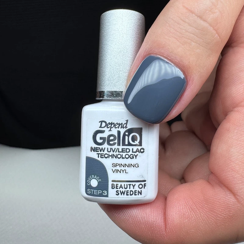 Depend Cosmetic Gel iQ Polish Stap 3 - Spinning Vinyl is een heerlijke gelnagellak die je kunt gebruiken als stap 3 van de Depend Gel iQ nagellakbehandeling. Breng de lak in een dunne laag aan en laat deze 30 seconden uitharden onder de Gel iQ UV/LED-lamp, twee keer voor een optimaal resultaat. De Depend Gel iQ nagellakbehandeling is snel en eenvoudig aan te brengen en geeft een superglanzend resultaat met een vollere finish dan gewone nagellak. De behandeling vindt plaats in 5 eenvoudige stappen met de volgende producten: - Stap 1: Depend Gel iQ Pre-Cleanser - Stap 2: Depend Gel iQ Base Coat - Stap 3: Depend Gel iQ Polish in uw gewenste kleur - Stap 4: Depend Gel iQ Top Coat - Stap 5: Depend Gel iQ High Shine Cleanser - Gel iQ UV/LED-lamp voor het uitharden na elke toepassing van basislaag, nagellak en toplaag (kan kan worden gekocht in een starterskit hier) U hoeft uw natuurlijke nagels niet voor te bereiden met vijlen of te behandelen met een sterke primer, wat de kwaliteit van uw nagels kan verminderen. Gel iQ heeft slechts een lichte reiniging nodig met een milde Pre-Cleanser voordat u uw nagellakbehandeling uitvoert. De Gel iQ UV/LED-lamp is speciaal ontwikkeld met een uithardingstijd van 30 seconden voor elke applicatiestap. De symbiose tussen lamp en nagellak zorgt voor zelfnivellering, waarbij eventuele randjes tijdens het uitharden verdwijnen, zelfs als u niet volledig gelijkmatig hebt gelakt. Na het uitharden van de topcoat in de lamp, is de laatste stap het reinigen met High Shine Cleanser, wat zorgt voor een fantastische glans en kleurweergave. De nagellak is nu uitgehard, droog en kan direct worden aangeraakt, en is schokbestendig. Bij correct gebruik geeft Gel iQ nagellakbehandeling een zeer duurzaam resultaat tot wel 14 dagen. Let op: De kleur van de lak kan in werkelijkheid intenser lijken dan op de foto's. Voordelen: - Gellak - Dekkende kleur - Hardt uit in 30 seconden onder de Gel iQ UV/LED-lamp - Fantastische glans en kleurweergave - Zelfnivellerend effect - Blijft tot 14 dagen zitten - Veganistisch - Kan ook gebruikt worden voor teennagels Gebruik: - Lees de gebruiksaanwijzing, inclusief de veiligheidsinstructies, in de verpakking zorgvuldig door voordat u met uw behandeling begint - Zorg ervoor dat u de lak alleen op het nageloppervlak aanbrengt en niet op de nagelriem of de omliggende huid - Als er basecoat, lak of topcoat op de huid rond de nagels komt, moet deze worden verwijderd met Gel iQ Pre-Cleanser op een wattenstaafje VÓÓR het uitharden Stap 1 - Reinigen: - Doe Pre-Cleanser op een wattenschijfje - Maak de nagel voorzichtig schoon - Laat het ca. 2 minuten drogen. 30 seconden zodat de nagel helemaal droog is - Raak het nageloppervlak niet aan nadat het is schoongemaakt Stap 2 - Basislaag: - Vermijd contact met de huid en nagelriemen - Breng een dunne laag basislaag aan - Laat deze 30 seconden uitharden in de Gel iQ UV/LED-lamp Stap 3 - Polijsten/kleuren: - Vermijd contact met de huid en nagelriemen - Breng een dunne laag Gel iQ Polish aan en laat deze 30 seconden uitharden - Breng nog een dunne laag Gel iQ Polish aan en laat deze opnieuw 30 seconden uitharden Stap 4 - Toplaag: - Vermijd contact met de huid en nagelriemen - Breng een dunne laag toplaag aan en laat deze 30 seconden uitharden Stap 5 - Reinigen/afwerking: - Zorg dat u minimaal 12 wattenschijfjes bij de hand hebt - Doe een royale hoeveelheid High Shine Cleanser op een wattenschijfje - Plaats het natte oppervlak van het wattenschijfje op de hele nagel en wacht 5 seconden - Druk met 2 vingers op het wattenschijfje zodat u gelijkmatige druk op de hele nagel en het nageloppervlak uitoefent - Dan Trek het wattenschijfje in één stevige beweging van de nagelwortel naar de nagelpunt. - Herhaal de procedure voor de andere nagels en gebruik voor elke nagel een nieuw wattenschijfje. - Bevochtig een nieuw wattenschijfje met High Shine Cleanser. - Reinig van de nagelwortel naar de punt, eerst in het midden en vervolgens aan de linker- en rechterkant van elke nagel van één hand. - Herhaal de reiniging aan de andere hand met een nieuw wattenschijfje. - Was uw handen grondig met water en zeep. Verwijdering: - Verwijder voorzichtig met Gel iQ Remover Oil Method 1 - Gebruik Gel iQ Remover Method 2 en Gel iQ Removal Wraps Foil Method 2 in de gevallen waarin de nagellak moeilijk te verwijderen is Veiligheidsinformatie: Gebruik Gel iQ niet als: - U eerder een allergische reactie heeft gehad na het gebruik van UV/LED-uithardende producten - U overgevoelig bent voor acrylaten, aangezien deze producten een allergische reactie kunnen veroorzaken - U wondjes of scheurtjes in de nagelriemen of dergelijke heeft, of als uw nagels in slechte conditie zijn (dun, droog, gerafeld) - U op uw nagels bijt of korte nagels heeft waarbij de nagelrand (punt) stopt voor het einde van de vingertoppen Waarschuwing: - Laat het niet in contact komen met de huid - Lees de gebruiksaanwijzing zorgvuldig door voor gebruik en volg deze strikt op - Buiten het bereik van kinderen houden - Kan een allergische reactie veroorzaken - Als u bijwerkingen ervaart, stop dan onmiddellijk met het gebruik van het product - Bij contact met de ogen: onmiddellijk spoelen met water en medische hulp inroepen - Bewaar het product op een veilige plaats bij kamertemperatuur - Niet blootstellen aan direct zonlicht. Het product is niet bedoeld voor personen jonger dan 16 jaar. Ingrediëntenlijst: BIS-HEA Poly(1,4-Butanediol)-9/IPDI Copolymer, Hydroxypropyl Methacrylate, Ethyl Trimethylbenzoyl Phenylphosphinate, Silica, BHT, CI 77891, CI 77499, CI 42090, CI 19140, CI 77510.