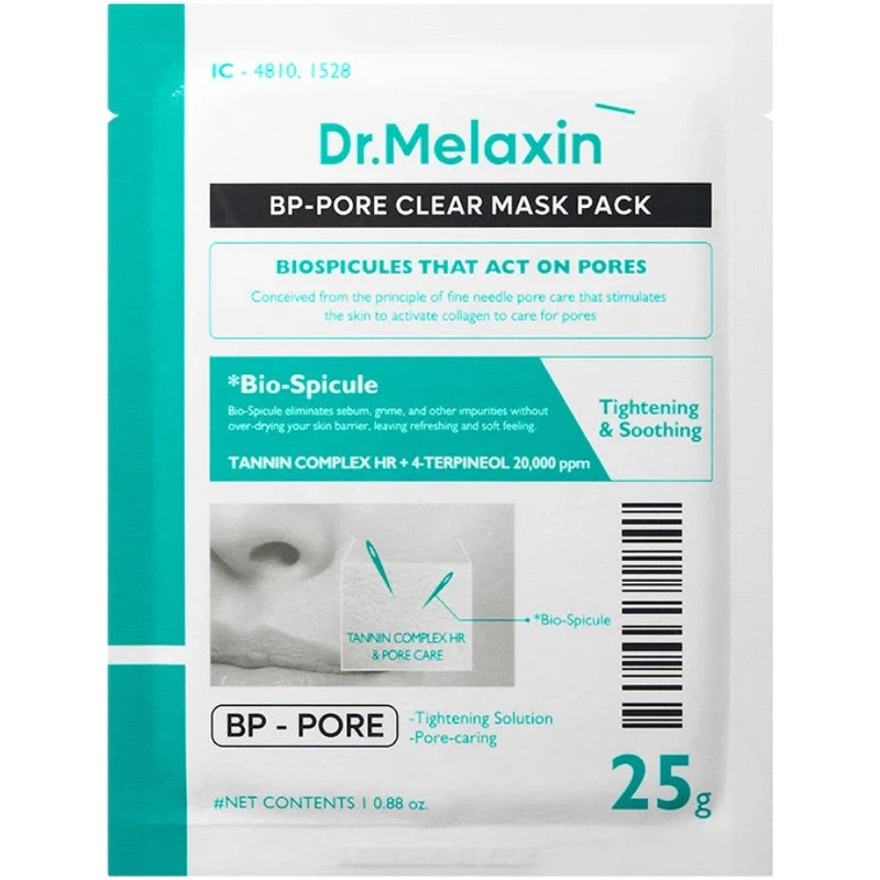 De Dr.Melaxin BP Pore Clear Facial Mask is een sheetmasker dat zich richt op het minimaliseren van de zichtbaarheid van poriën en het kalmeren van huidirritaties. De sheetmaskers kunnen de collageenaanmaak stimuleren en de poriën verzorgen dankzij hun samenstelling van actieve ingrediënten. De formule bevat onder andere niacinamide en adenosine, die de zichtbaarheid van poriën verminderen en de algehele textuur en uitstraling van de huid egaliseren. Zoethoutwortelextract en panthenol dragen bij aan de kalmerende werking, terwijl groene thee-extract antioxiderende eigenschappen heeft die de huid beschermen tegen irritatie. Tot slot helpt de toegevoegde glycerine het vochtgehalte van de huid op peil te houden en zo uitdroging te voorkomen. De maskers bevatten natuurlijke micronaalden (microspicules) die de opname van de actieve ingrediënten ondersteunen en optimaliseren, zodat ze effectief diep in de huid kunnen doordringen. De maskers zijn gemaakt van microvezelmateriaal, waardoor ze goed aansluiten op het gezicht en de opname van de actieve ingrediënten in de huid bevorderen. Op deze manier bieden de maskers een intensieve, verzorgende behandeling die de natuurlijke processen van de huid ondersteunt. Bij regelmatig gebruik kunnen ze de huidbalans bevorderen en bijdragen aan een egalere teint met minder zichtbare poriën. Houd er rekening mee dat een tintelend gevoel door de micronaalden normaal is bij het gebruik van de maskers. Voordelen: - Sheetmaskers x 5 stuks - Minimaliseert de zichtbaarheid van poriën - Hydraterend en kalmerend - Verzacht huidirritatie - Ondersteunt de huidbalans - Helpt bij een gedehydrateerde huid, roodheid, grote poriën en pigmentvlekken - Geschikt voor vette, gecombineerde, normale en droge huidtypen - Vrij van etherische oliën en uitdrogende alcohol Gebruiksaanwijzing: - Aanbrengen op een gereinigde en droge/licht vochtige huid na een exfoliatie en toner - Plaats het masker op het gezicht - Wees voorzichtig rond de ogen en let goed op hoe uw huid reageert - Laat het masker 10-20 minuten inwerken - Verwijder het masker en gooi het weg - Dep indien nodig. Overtollig vocht uit het masker in de huid laten trekken, niet afspoelen - Sluit af met een nachtcrème - Gebruik het masker in je avondroutine en breng bij voorkeur de volgende dag een zonnebrandcrème aan. Ingrediëntenlijst: Water, Glycerine, Butyleenglycol, Niacinamide, Alcohol Denat, 1,2-Hexanediol, Hydroxyacetofenon, Cyclopentasiloxaan, Betaine, PEG-60 Gehydrogeneerde Ricinusolie, Arginine, Carbomeer, PEG-10 Dimethicone/Vinyl Dimethicone Crosspolymer, Cyclohexasiloxaan, Xanthaangom, Hydroxyethylacrylaat/Natriumacryloyldimethyltauraat Copolymeer, Hydroxyethylcellulose, Ethylhexylglycerine, Adenosine, Dinatrium EDTA, Dikaliumglycyrrhizaat, Panthenol, Melia Azadirachta Bladextract, Parfum, Sorbitan Isostearaat, Melia Azadirachta Bloemextract, Diospyros Kaki-bladextract, Vitis Vinifera (druif) fruitextract, Coffea Arabica (koffie) zaadextract, Carthamus Tinctorius (saffloer) bloemextract, Polygonum Cuspidatum wortelextract, Camellia Sinensis bladextract, Castanea Crenata (kastanje) schilextract, Zanthoxylum Piperitum fruitextract, 4-terpineol, gehydrolyseerde spons.