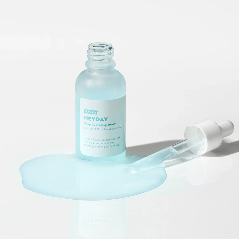 Frankly Heyday Serum is een doelgericht serum dat zich richt op het diep hydrateren van de huid en daarmee het versterken van de gezondheid en het welzijn ervan. Het serum is met name geschikt voor de droge huid, maar dankzij de milde samenstelling kan het door alle huidtypen worden gebruikt. Het serum bevat 1,125% panthenol en hyaluronzuur, die tot wel 48 uur lang een hydraterende werking hebben. Hyaluronzuur, dat van nature in de huid voorkomt, kan grote hoeveelheden vocht binden, terwijl panthenol bekend staat om het ondersteunen van de natuurlijke vochtbalans van de huid. Adenosine is een actief ingrediënt dat is toegevoegd om de elasticiteit van de huid te ondersteunen en zo een gladmakend effect te hebben. De samenstelling van het serum met extra vochtvasthoudende ingrediënten zoals glycerine, butyleenglycol en propaandiol helpt het vochtgehalte in de huid stabiel te houden. Heyday Serum is ontwikkeld met als doel uw huid optimale verzorging en voeding te bieden met een product met een lichte en comfortabele textuur. Dit betekent dat het serum snel wordt opgenomen en een aangenaam en verzorgd gevoel achterlaat. Bij regelmatig gebruik kan het serum de vochtbalans van je huid ondersteunen en bijdragen aan een veerkrachtigere huid met een mooie, frisse gloed. Voordelen: - Serum - Diep hydraterend tot wel 48 uur - Ondersteunt de elasticiteit en stevigheid van de huid - Verzachtend effect - Geeft een frisse gloed - Voor alle huidtypen - Bijzonder geschikt voor de droge huid - Lichte en snel absorberende textuur - Vrij van kunstmatige parfum, etherische oliën, siliconen en uitdrogende alcohol - Veganistisch Gebruiksaanwijzing: - Aanbrengen op een gereinigde huid - Neem een paar druppels serum in de handpalmen en dep het in de huid - Laat het serum intrekken - Ga verder met de volgende stap in je huidverzorgingsroutine - Gebruik 's ochtends en 's avonds Ingrediëntenlijst: Water, Glycerine, Butyleenglycol, Propaandiol, Dipropyleenglycol, Panthenol (1,125%), 1,2-Hexaandiol, Betaine, Ammoniumacryloyldimethyltauraat/VP-copolymeer, Hydroxyacetofenon, Natriumhyaluronaat, Hyaluronzuur, Gehydrolyseerd hyaluronzuur, Xanthaangom, Gossypium Herbaceum (katoen) fruitwater, ethylhexylglycerine, moutextract, gehydrolyseerd gardenia-extract, gehydrolyseerd moutextract, adenosine, gehydrolyseerd viola tricolor-extract, dinatrium-EDTA, hibiscus esculentus fruitextract, malva sylvestris (malva) extract, momordica charantia fruitextract, althaea rosea bloemextract, hibiscus Syriacus bastextract, plantago asiatica extract, viscum album (maretak) extract, melia azadirachta bladextract, melia azadirachta bloemextract, coccinia indica fruitextract, solanum melongena (aubergine) fruitextract, ocimum sanctum bladextract, curcuma longa (kurkuma) wortelextract, corallina officinalis extract.