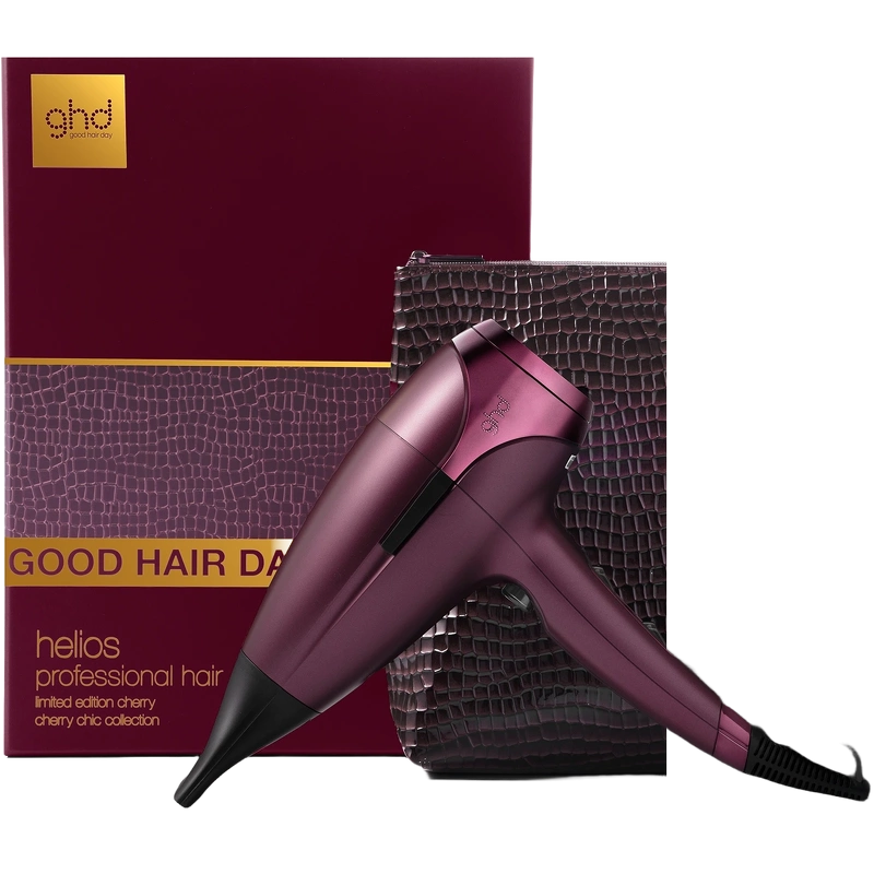 Betreed een seizoen vol onberispelijke elegantie en vijfsterren haarcadeaus met de ghd Cherry Chic-collectie, waar klassieke glamour en professionele styling samenkomen. Deze feestelijke editie is een ode aan tijdloze charme en elegantie, en de ghd Helios™ professionele föhn staat centraal met zijn rijke kersenrode kleur en bijpassende toilettas, voor moeiteloze elegantie onderweg. De ghd Helios™ föhn is jouw ticket naar sneller, ultrakrachtig drogen en nauwkeurige stylingcontrole. Ontwikkeld door ghd's in Cambridge gevestigde UK Research & Design Lab in samenwerking met vooraanstaande natuurkundigen, ingenieurs en stylingexperts, levert de föhn salonkwaliteit in recordtijd. Deze lichtgewicht maar krachtige föhn van de volgende generatie is uitgerust met een borstelloze 2200W-motor die een ultrageconcentreerde luchtstroom van 120 km/u levert, waardoor je föhnroutine aanzienlijk sneller verloopt zonder in te leveren op controle. Dankzij de Aeroprecis™-technologie werken interne aerodynamica en een gevormd mondstuk samen om de luchtstroom te kanaliseren en een superieure warmteverdeling te garanderen, voor een intuïtievere styling en optimale haarstijling. ghd Helios™ levert stylingresultaten op maat met een gladde, salonwaardige finish. ghd Helios™ is verrijkt met geavanceerde ionentechnologie die pluis en losse haren minimaliseert1, waardoor je haar zichtbaar glanzender en luxueuzer zijdezacht wordt. Variabele temperatuur- en snelheidsinstellingen geven je controle over elke stijl, terwijl de Cool Shot-knop zorgt voor langdurige fixatie. Met zijn verfijnde vorm en functies biedt ghd Helios™ onder andere een geoptimaliseerde gewichtsbalans voor moeiteloze bediening en een op maat gemaakt akoestisch systeem voor stillere styling. De set bevat: - 1 stuk ghd Helios Föhn - Zwart - 1 stuk ghd Tas