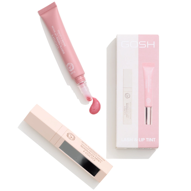 GOSH Lash & Lip Tint Gift Set is een luxe geschenkdoos met alles wat je nodig hebt voor een perfecte look onderweg. LASH EXTENSION Mascara geeft je wimpers met indrukwekkend volume en lengte, waardoor het lijkt alsof je extensions hebt laten aanbrengen - zonder salonbezoek. Het slimme to-go ontwerp met ingebouwde spiegel maakt het gemakkelijk om je wimpers op te frissen, waar je ook bent. Als kers op de taart, Soft'n Tinted 004 Vintage Rose, een voedende lippenbalsem die vocht, een lichte tint en SPF15 combineert, zodat je lippen de hele dag zacht, verzorgd en beschermd aanvoelen - zonder plakkerig te zijn. Samen creëren ze een prachtige, natuurlijke look die je schoonheid op een eenvoudige en elegante manier benadrukt. De geschenkdoos bevat: - 1 st. GOSH Lash Extension Mascara 7 ml - Extreme Black - 1 st. GOSH Soft'n Tinted Lippenbalsem 8 ml - 004 Vintage Rose