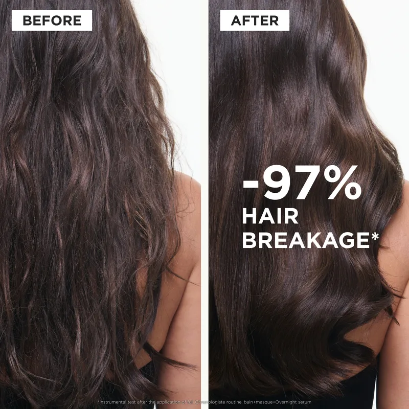 Kérastase Chronologiste Masque Intense Régénérant Hair Mask is een luxueus, revitaliserend haarmasker dat intensief voedt en verrijkt is met hyaluronzuur, Abyssine en vitamine E. Deze ingrediënten gaan effectief de tekenen van veroudering van de hoofdhuid en het haar tegen. De nieuwe Chronologiste-lijn vermindert niet alleen zichtbare tekenen van haarveroudering, maar geeft ook verzwakt haar een boost om de gezondheid en vitaliteit te optimaliseren. Dankzij de gerichte behandeling verbetert het masker zichtbaar vijf belangrijke tekenen van veroudering: pluizig haar, droogheid, dofheid, gebrek aan dikte en volume. Het resultaat is intens gehydrateerd haar, langdurige controle over pluizig haar, meer glans en een sterkere haarvezel – voor een jeugdige, complete look die langer aanhoudt. Voordelen: - Haarmasker - Vermindert zichtbare tekenen van haarveroudering - Herstelt verzwakt haar en optimaliseert de gezondheid - Verbetert pluizig haar, droogheid, dofheid, gebrek aan dikte en volume - Biedt langdurige controle tegen pluizig haar - Geeft meer glans - Versterkt de haarvezels - Het haar voelt jeugdig en vol aan Gebruik: - Aanbrengen op pas gewassen, vochtig haar - Verdeel het masker gelijkmatig van de middenstukken tot de punten - Laat 5-10 minuten inwerken - Spoel grondig uit met water - Gebruik 1-2 keer per week voor optimale resultaten