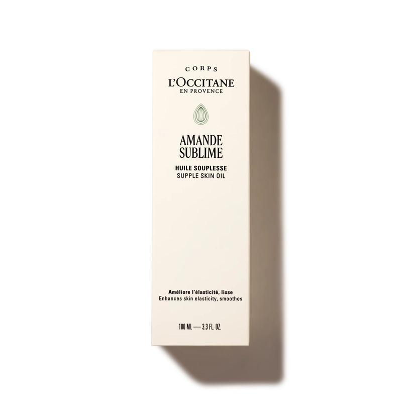 L'Occitane Almond Supple Skin Oil is een lichaamsolie verrijkt met 50% amandelolie die de huid voedt en zijdezacht en stevig maakt. Spray de olie op je huid en laat de lichte olie intrekken, waardoor je een heerlijke geur van verse amandelen en vanille ervaart. De amandel, die beschermd groeit in een groene en zachte schil, staat bekend om zijn vermogen om de huid zacht en glad te maken. Voordelen: - Lichaamsolie - Bevat 50% amandelolie - Voedt de huid - Maakt de huid zijdezacht en steviger - Spray op de huid - Trekt gemakkelijk in - Geparfumeerd met amandel en vanille - Maakt de huid zacht en glad Gebruik: - Breng 's ochtends en 's avonds 1-2 pompjes per zone aan en masseer in met cirkelvormige, opwaartse bewegingen