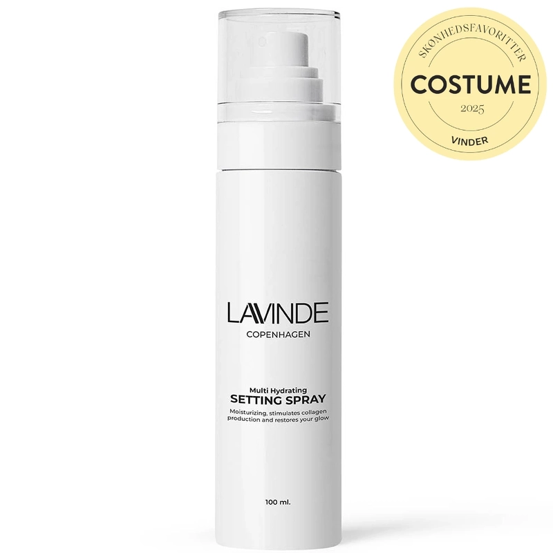 Lavinde Copenhagen Multi Hydrating Setting Spray is een heerlijke setting spray die de huid een verfrissende vochtboost geeft en er tegelijkertijd voor zorgt dat je make-up de hele dag onberispelijk blijft. De zorgvuldig samengestelde formule bevat ingrediënten met hydraterende en verzachtende eigenschappen die de huid goed gehydrateerd en verzorgd achterlaten. Deze veelzijdige spray kan zowel gebruikt worden als laatste stap in de schoonheidsroutine voor een mooie en langdurige finish of overdag voor extra vocht. Het zorgt daardoor voor een frisse en stralende huid, terwijl je make-up de hele dag goed blijft zitten. Lavinde Copenhagen Multi Hydrating Setting Spray is bovendien veganistisch, parfumvrij en allergie-gecertificeerd, waardoor het zacht is voor alle huidtypes, inclusief zwangere vrouwen en vrouwen die borstvoeding geven. *Voordelen: - Setting spray - Hydrateert en kalmeert de huid - Zorgt ervoor dat make-up de hele dag blijft zitten - Kan voor en na make-up worden gebruikt - Perfect voor alle huidtypes - Geeft een bedauwde finish - Gemakkelijk en snel in gebruik - Veganistisch, parfum -vrij en allergie-gecertificeerd Gebruik: - Gebruik bovenop je make-up of gedurende de dag om vocht aan je huid toe te voegen - Schud de Setting spray voor gebruik, houd hem 30 cm vast. En toepassen Ingrediëntenlijst:** Water, glycerine, propaandiol, butyleenglycol, D-panthenol, pentyleenglycol, bladsap van Aloë Barbadensis (aloë vera), fruitextract van Cucumis Sativus (komkommer), hydroxypropylmethylcellulose, isopentyldiol, natriumhyaluronaat ( Laag), caprylyl/caprylglucoside, 1, 2-hexaandiol, polyglyceryl-4-capraat, polyglyceryl-6-lauraat, natrium Dilauramidoglutamide Lysine, Ethylhexylglycerine, Allantoïne, Polyvinylpyrrolidon, Fenoxyethanol, Pentapeptide-3, Palmitoyl Tetrapeptide-7, Natriumbenzoaat, Melkzuur.
