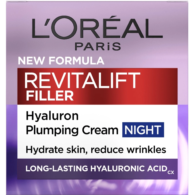 L'Oréal Paris Revitalift Filler Nachtcrème is een anti-aging nachtcrème die de huid meer volume geeft. Hyaluronzuur komt van nature voor in de huid en helpt de huid stevig en elastisch te maken. Na verloop van tijd neemt de aanmaak hiervan af. Hierdoor verliest de huid volume en stevigheid, waardoor de gezichtscontouren minder uitgesproken worden. De nachtcrème heeft een hoge concentratie hyaluronzuur en helpt rimpels te verminderen, het huidvolume te verbeteren en de natuurlijke barrièrefunctie van de huid te versterken. Voordelen: - Geeft de huid meer volume - Vermindert rimpels - Versterkt de natuurlijke barrièrefunctie van de huid Gebruik: - Gebruik 's avonds op een gereinigde huid - Breng aan met opwaartse bewegingen