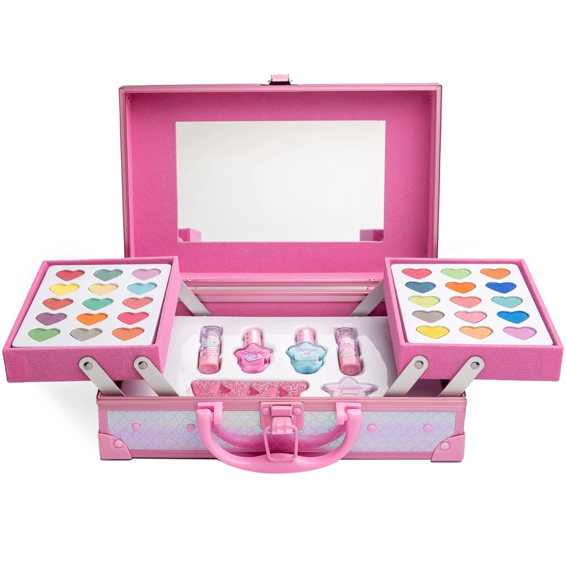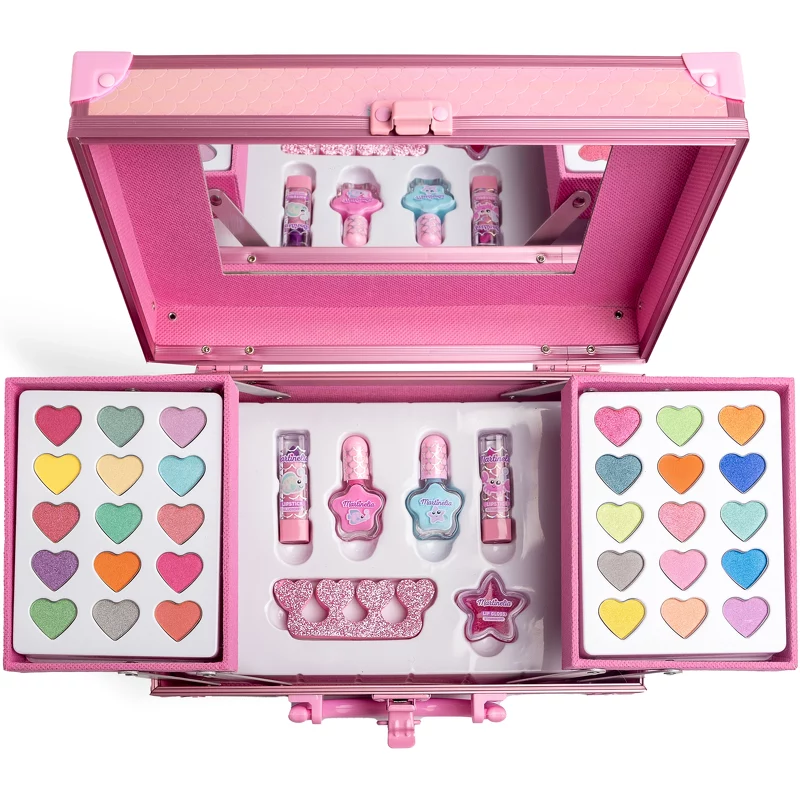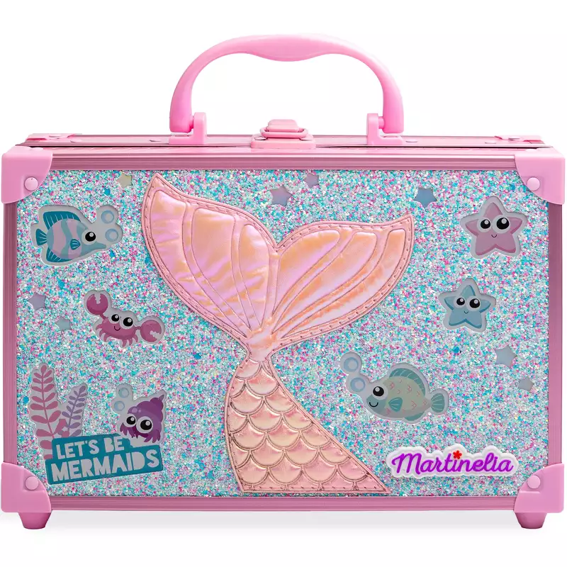 De Martinelia Beauty Treasure Chest is een supermooie make-upkoffer met zeemeerminthema waar elke kleine prinses dol op zal zijn. De koffer bevat 30 oogschaduws, 2 lipsticks, 2 nagellakken, lipgloss, een spiegel en een teenspreider. De koffer zelf is niet alleen praktisch, maar ook ongelooflijk mooi, en is versierd met glitters en een grote, prachtige zeemeerminstaart. Deze make-upkoffer geeft kinderen een leuke en creatieve ervaring waarbij ze kunnen spelen met kleuren en uitdrukkingen, en het zit allemaal in een mooie koffer die gemakkelijk mee te nemen is. De set bevat: - 30 stuks oogschaduw - 2 stuks lippenstift - 2 stuks nagellak - 1 stuk lipgloss - 1 stuk teenspreider - Ingebouwde spiegel