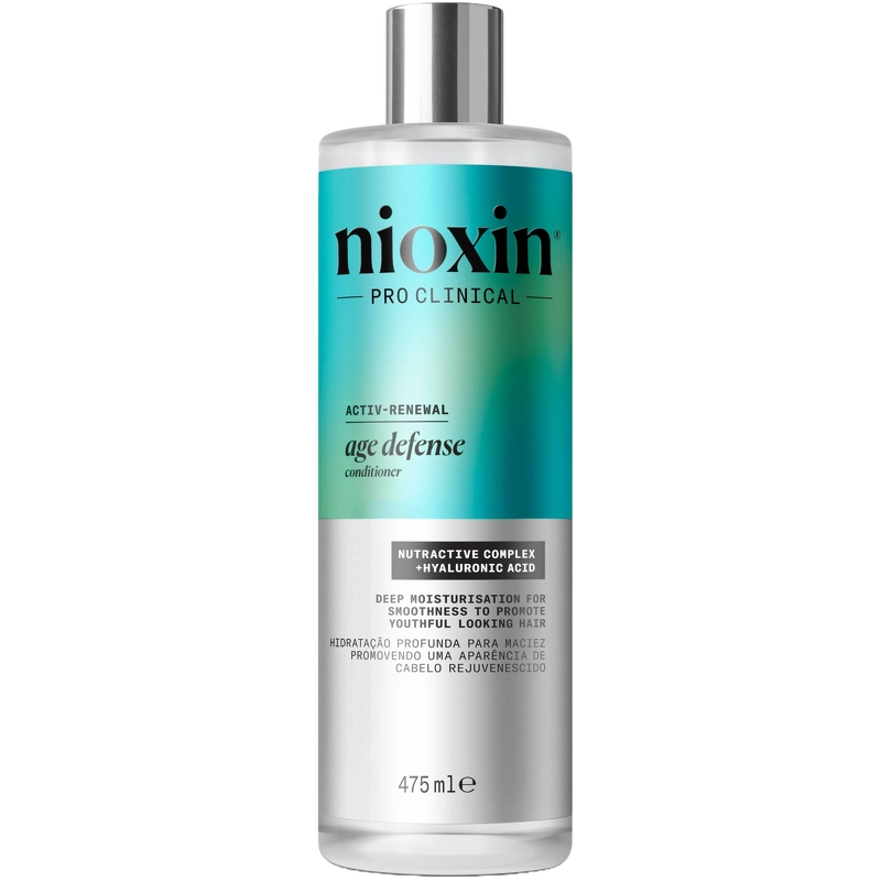 Nioxin Age Defense Conditioner is een verzorgende conditioner speciaal ontwikkeld voor ouder wordend haar. Deze lichte, intens hydraterende conditioner versterkt het haar, beschermt het tegen breuk en maakt het zijdezacht van wortel tot punt. Het bestrijdt ook de droogheid en broosheid die vaak voorkomen bij ouder wordend haar. Dankzij de krachtige formule met hyaluronzuur, niacinamide en cafeïne hydrateert het zowel haar als hoofdhuid intensief. Gebruik het in combinatie met de producten uit de Nioxin Age Defense routine om de hoofdhuid te revitaliseren, de haarfollikelactiviteit te ondersteunen en de melanineproductie te bevorderen voor voller, glanzender en jeugdiger haar. De kleurveilige formule is vrij van sulfaten, siliconen en parabenen en biedt de dagelijkse hydratatie die ouder wordend haar nodig heeft, zonder het te verzwaren. Voordelen: - Conditioner - Ontwikkeld voor ouder wordend haar - Diep hydraterend - Versterkend - Verzachtend - Voorkomt droogheid en broosheid - Verzwaart het haar niet - Kleurveilig Gebruiksaanwijzing: - Verdeel gelijkmatig over haar en hoofdhuid na het wassen - Laat 3-5 minuten inwerken en spoel vervolgens grondig uit