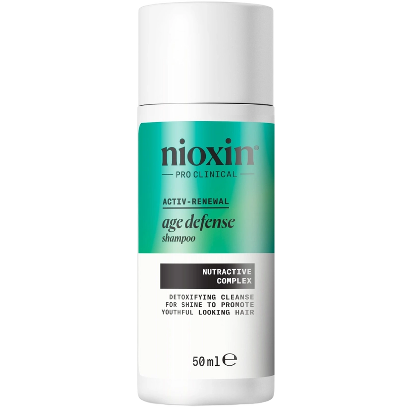 Nioxin Age Defense Shampoo is een anti-aging shampoo die is ontworpen om je haar voller, glanzender en gezonder te maken – en dat langer. Deze ontgiftende shampoo is gebaseerd op geavanceerde hoofdhuidwetenschap en maakt gebruik van het Nutractive+ Complex met niacinamide, een ingrediënt uit de huidverzorging dat bekend staat om zijn ondersteunende werking op een gezonde hoofdhuid. De shampoo is mild genoeg voor dagelijks gebruik op alle haartypes en reinigt haar en hoofdhuid op milde wijze van onzuiverheden en productresten. Het herstelt de natuurlijke glans en het volume, is dermatologisch getest, kleurveilig en vrij van sulfaten, parabenen en siliconen – om de haarkleur en glans te behouden. De Age Defense-lijn van Nioxin biedt een complete 360°-oplossing voor jeugdiger, vitaler haar, en dat langer. Met een krachtige combinatie van ingrediënten uit de huidverzorging revitaliseert de lijn de hoofdhuid, ondersteunt de haarfollikelfunctie en helpt de melanineproductie op peil te houden voor meer volume, glans en een natuurlijk behouden kleurpigment. Voordelen: - Shampoo - Aanbevolen voor alle haartypes - Zorgt voor voller, glanzender en gezonder haar - Ontgiftend - Ondersteunt de gezondheid van de hoofdhuid - Mild genoeg voor dagelijks gebruik - Reinigt zachtjes - Veilig voor gekleurd haar - Revitaliseert de hoofdhuid - Ondersteunt de haarfollikelfunctie - Helpt de melanineproductie op peil te houden Gebruik: - Masseer in nat haar en hoofdhuid tot een rijk schuim ontstaat - Spoel grondig uit - Voor het beste resultaat - gebruik daarna de Nioxin Age Defense Conditioner en Age Defense Serum
