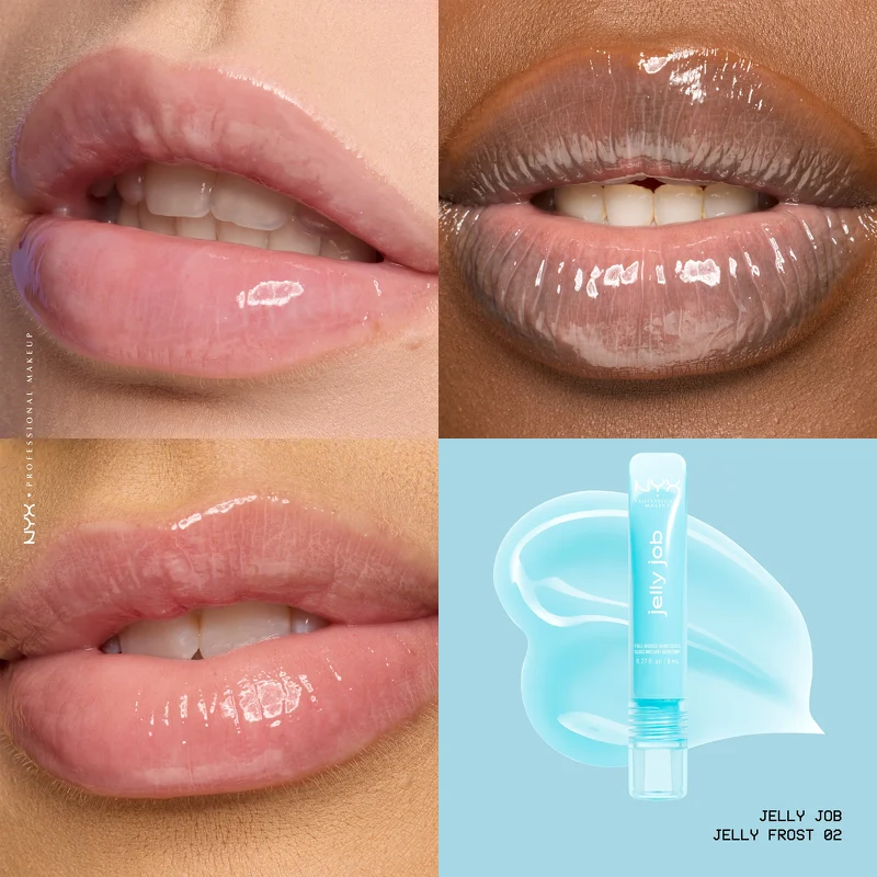 NYX Prof. Makeup Jelly Job Lip Gloss - 02 Jelly Frost is een prachtige en voedende lipgloss die volle, glanzende lippen geeft en met trots in Korea wordt gemaakt. Met slechts één veeg van de lichte formule, aangebracht met de nieuwe, precieze spatel, krijg je een gelachtig gevoel en een sappige glans, voor glasachtige, superglanzende lippen waar je alleen maar van kunt dromen. De formule is verrijkt met een peptidecomplex en een heerlijke kersengeur, voor ongeëvenaard zachte lippen. Het is tijd voor een gelachtig gevoel en een superglanzende finish in een tube. Met deze lipgloss is het nog nooit zo makkelijk geweest om iedereen jaloers te maken op jouw glasachtige, superglanzende lippen. Voordelen: - Lipgloss - Verrijkt met peptidecomplex - Geeft de lippen een vollere look - Glanzende, superglanzende finish - De lippen voelen zachter aan - Heerlijke kersengeur - Lichte en voedende formule - Precisie-applicator in de vorm van een spatel - Veganistisch Gebruiksaanwijzing: - Breng de lipgloss gelijkmatig aan op de lippen met de precisie-applicator voor een waanzinnig volle liplook. Ingrediëntenlijst: Gehydrogeneerd polyisobuteen, diisostearylmalaat, polyglyceryl-2 triisostearaat, bis-behenyl/isostearyl/fytosteryldimeer dilinoleyldimeer dilinoleaat, silica dimethylsilylaat [nano] / silica dimethylsilylaat, synthetische was, 1,2-hexanediol, sorbitanisostearaat , fenoxyethanol, caprylylglycol, aroma/smaak, prunus aviumzaadolie/zoete kersenzaadolie, aqua/water/eau, CI 77891/titaniumdioxide, CI 42090/blauw 1 meer, benzaldehyde, anijsalcohol, geranylacetaat, tocoferol, citronol, triethoxycaprylylsilaan, aluminiumhydroxide, pineen, rozenketonen, CI 15985/geel 6 meer, CI 19140/geel 5 meer, palmitoylpentapeptide-4, palmitoyltetrapeptide-7, tripeptide-1, TRIPEPTIDE-2, ACETYL HEXAPEPTIDE-8, ACETYL OCTAPEPTIDE-3 (BESTAND N70070452/1).