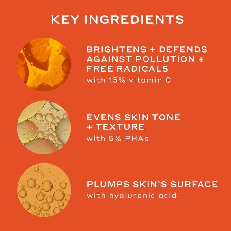 Ole Henriksen Truth Banana Bright Vitamin C Serum is een anti-age serum, dat je een volledig fantastische huid geeft. Het bevat 15% vitamine C, wat een verhelderend effect op de huid heeft, wat helpt om de teint te egaliseren en donkere verkleuringen van de huid vermindert. Daarnaast bevat het 5% PHA, dat helpt de huidstructuur en kleur te verbeteren, en dat tegelijkertijd een corrigerend effect heeft op hyperpigmentatie . Net als de andere Banana Bright-producten, is deze natuurlijk ook met de op bananenpoeder geïnspireerde pigmenten, die verheldert en kleurcorrigeert , en dan is het met het onmisbare hyaluronzuur, dat ervoor zorgt dat vocht in de huid wordt vastgehouden en daarmee de huid meer volheid en veerkracht te geven. Ole Henriksen Truth Banana Bright Vitamin C Serum is daarom een onmisbaar product als je een egalere huid wilt, last hebt van hyperpigmentatie, of gewoon een huid wilt met meer glans en leven. Dit serum beschermt tegen vervuiling, milieuschade en vrije radicalen, en als bijkomend voordeel zorgt het ervoor dat je make-up langer blijft zitten. Krijg de mooiste en meest stralende huid ooit met Ole Henriksen Truth Banana Bright Vitamin C Serum - je huid zal er dol op zijn! OPMERKING: Vanwege het gehalte aan PHA wordt aanbevolen om overdag zonnebrandcrème te gebruiken bij gebruik van dit serum._ Voordeel: - Serum - Lijkt helderder - Verzacht de huidskleur - Vermindert hyperpigmentatie - Verbetert de structuur van de huid - Bindt vocht in de huid - Geeft een stralende mooie gloed - De make-up blijft langer zitten Sollicitatie: - Dagelijks gebruikt op een gereinigde huid - Werk af met vochtinbrengende crème - Vergeet niet om zonnebrandcrème te gebruiken Ingrediënten lijst: Aqua / Water / Eau, 3-O-Ethyl Ascorbinezuur, Neopentyl Glycol Diheptanoaat, Gluconolacton, Cetearyl Olivate, Sorbitan Olivate, Citrus Aurantium Dulcis (Sinaasappel) Olie, Citrus Aurantium Dulcis (Oranje) Schil Olie, Triethyl Citraat, Sinaasappel Citrus Sinensis) Fruitextract, Helianthus Annuus (Zonnebloem) Zaadolie, Kaliumhydroxide, Betaïne, Panthenol, Fenoxyethanol, Hydroxyacetofenon, Aminomethylpropanol, Acrylaten / C10-30 Alkylacrylaat Crosspolymeer, Gluconzuur, Tocoferol, Glycerine, Succinicidium, Phycinoglycanaat, Natriumhybridaan, Metabisulfuronaat Hyaluronzuur, Caramel, Dikaliumglycyrrhizaat, Natriumpolyacrylaat, Pentaerythrityl Tetra-Di-T-Butyl Hydroxyhydrocinnamaat, Natriumfytaat, Citrus Limon (citroen) Fruit Extract, Rosa Canina Fruit Extract, Hippopidium, Hippopidium Barbarum Fruit Extract, Citrus Aurantium Dulcis (Oranje) Fruitextract, Leuconostoc / Radijswortelfermentatiefiltraat, Limoneen, Linalool, Citral, Titaniumdioxide (Ci 77891), Geel 5 (Ci 19140), Rood 4 (Ci 14700).