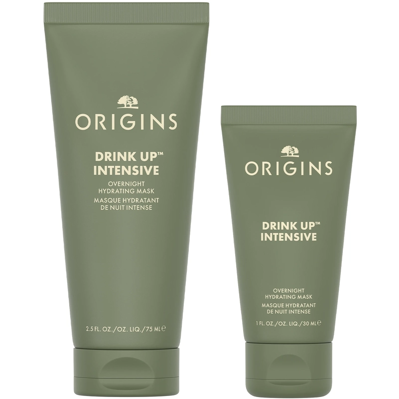 Origins Drink Up Intensive Overnight Hydrating Mask Gift Set (Limited Edition) is een heerlijke doos met twee maten van je favoriete masker. Origins Drink Up Intensive Overnight Hydrating Mask is een nachtmasker dat jouw redding is voor een dorstige huid die snakt naar hydratatie. Het rijke en effectieve nachtmasker is ontworpen om zelfs de droogste huid te verlichten en deze gehydrateerd en stralend te maken. Dit uitzonderlijk hydraterende masker voedt de huid direct en zorgt ervoor dat deze tot wel 72 uur zacht, glad en gehydrateerd blijft. Verrijkt met Zwitsers gletsjerwater, hyaluronzuur en avocadoboter, herstelt het je huid effectief gedurende de nacht. Dit nachtmasker is perfect voor wanneer je huid wat extra liefde nodig heeft! Het nachtmasker voorziet de huid van intensieve hydratatie en herstelt de huid voor de toekomst. Origins combineert krachtige ingrediënten van planten en de aarde, samen met nuttige synthetische ingrediënten, om pure, verzorgende producten te creëren die je huid transformeren. Sinds 1990 zet Origins zich in voor de verzorging van zowel jouw huid als onze planeet. Hun streven naar duurzaamheid begint met zorgvuldig geselecteerde ingrediënten, gaat verder in doordacht verpakkingsontwerp en straalt door in hun bewuste productiemethoden. Elke keer dat u voor Origins kiest, steunt u hun voortdurende initiatieven voor het planten van bomen die bijdragen aan het herstel en behoud van onze ecosystemen. Set bevat: - 1 stuk Origins Drink Up Intensive Overnight Hydrating Mask 75 ml - 1 stuk Origins Drink Up Intensive Overnight Hydrating Mask 30 ml