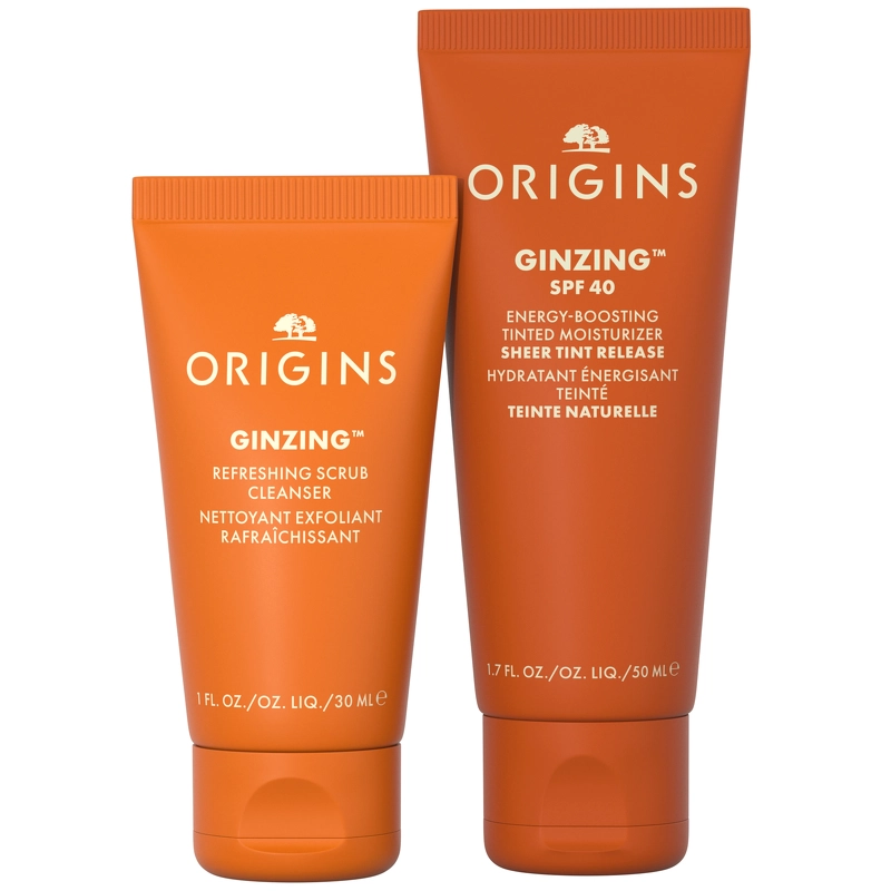 Origins Ginzing™ Protect & Glow Gift Set (Limited Edition) is een veganistische, verhelderende huidverzorgingsset met een reisformaat reiniger en getinte moisturizer, zodat je alles hebt wat je nodig hebt om je voor te bereiden en te stralen tijdens de feestdagen. Maak je klaar om te stralen tijdens de feestdagen in slechts 2 stappen. Reinig eerst je huid met Refreshing Scrub Cleanser, die mild exfolieert en je huid glad, helder en fris maakt. Egaliseer je huid vervolgens met SPF 40 Tinted Moisturizer, die zorgt voor een lichte tint en essentiële UV-bescherming. De set bevat: - 1 stuk Origins GinZing™ Refreshing Scrub Cleanser 30 ml - 1 stuk. Origins GinZing SPF 40 Energie-Boostende Getinte Hydraterende Gezichtscrème 50 ml