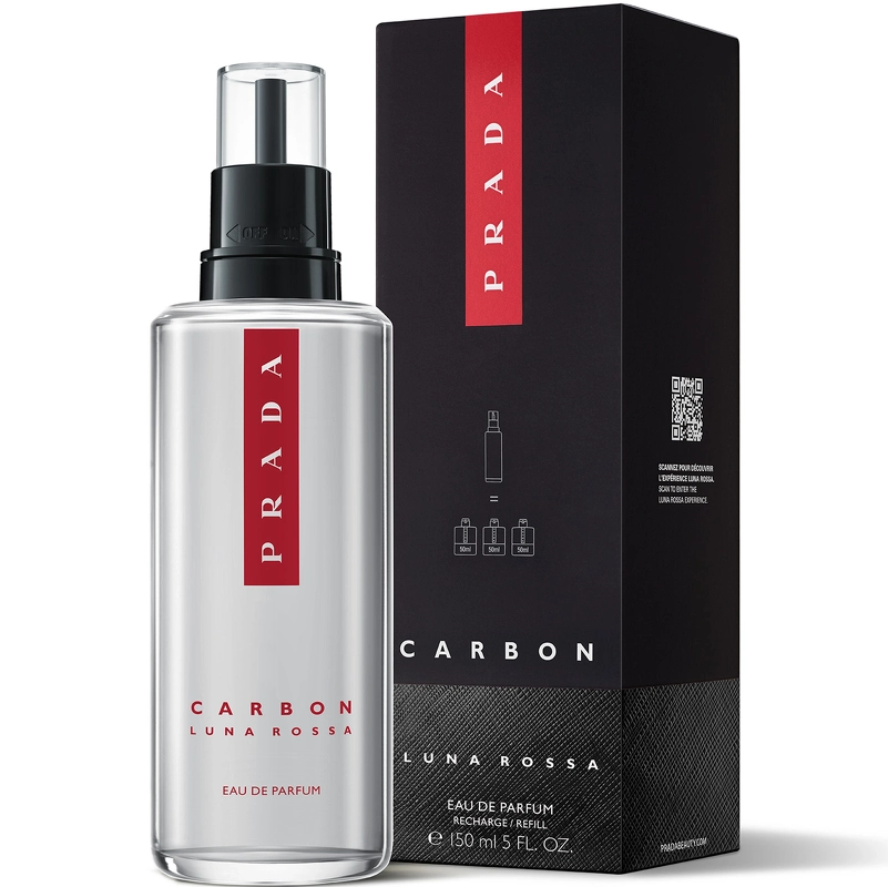 Prada Luna Rossa Carbon EDP Refill is een navulling voor uw originele flacon en kan daarom niet los gebruikt worden. Zo krijgt u uw favoriete geur voor een aantrekkelijke prijs en draagt u tegelijkertijd bij aan een beter milieu. Prada Luna Rossa Carbon EDP is een verfijnde en moderne geur die natuurlijke frisheid combineert met een geraffineerde, hightech elegantie. De geur is geïnspireerd op de kracht en puurheid van koolstof en symboliseert balans, innovatie en prestatie. De geur opent met frisse en energieke noten van bergamot en zwarte peper, die zorgen voor een heldere en levendige start. In het hart ontmoet lavendel metaalachtige en aquatische noten, evenals aardse nuances, wat een moderne en technologisch geïnspireerde frisheid creëert. In de basisnoot komt de sensuele warmte van ambroxan en patchouli naar voren en geeft de geur diepte, intensiteit en een langdurig karakter. Als Eau de Parfum heeft de geur een aanhoudende projectie en een geraffineerde, mannelijke signatuur. De geur is gecreëerd voor mannen die het contrast tussen natuurlijke frisheid en donkere, intense diepte waarderen.