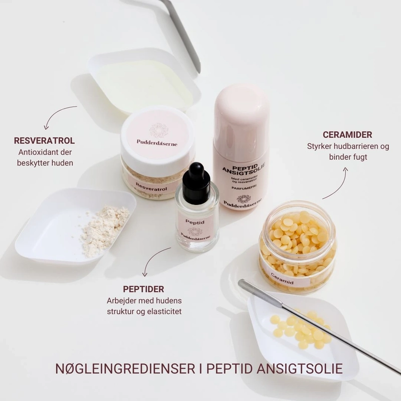 De Powder Boxes Peptide Facial Oil is een gezichtsolie voor mensen met een droge, doffe of rijpe huid die extra hydratatie, verzorging en een gezonde gloed nodig heeft. Het versterkt de huidbarrière, hydrateert intensief en helpt de huid haar soepelheid en elasticiteit terug te krijgen. De formule combineert innovatieve synthetische lipiden met voedende camelia- en cannabisolie, die zowel verzachtende als beschermende effecten hebben. Het bevat ook een natuurlijk anti-jeuk en kalmerend complex dat irritatie verzacht en de huid aangenaam in balans brengt. Peptiden stimuleren de eigen collageenproductie van de huid en helpen de huidstructuur te versterken, waardoor deze er steviger en egaler uitziet. Ze verminderen de zichtbaarheid van fijne lijntjes en ondersteunen het zelfherstellend vermogen van de huid. Ceramiden maken van nature deel uit van de beschermende huidbarrière en helpen vochtverlies te voorkomen. Ze herstellen de balans van de huid, maken haar beter bestand tegen uitdroging en beschermen tegen invloeden van buitenaf. Resveratrol en wakame-algen leveren krachtige antioxidanten die de huid beschermen tegen vrije radicalen en externe stressfactoren, terwijl ze zorgen voor een gezonde, natuurlijke gloed. Voordelen: - Gezichtsolie - Voor een droge, doffe of rijpe huid - Versterkt de huidbarrière en biedt intensieve verzorging - Herstelt de soepelheid en elasticiteit - Vermindert irritatie en jeuk - Maakt de huid steviger en egaler van uiterlijk - Vermindert de zichtbaarheid van fijne lijntjes - Ondersteunt het natuurlijke herstelproces van de huid - Geurvrij Gebruik: - Geschikt voor alle huidtypen, zowel 's ochtends als 's avonds - Gebruik het alleen of onder je crème voor extra verzorging en hydratatie Ingrediëntenlijst: Caprylic/Capric Triglyceride. Bis-Diglyceryl Polyacyladipate-2. Camellia Japonica Seed Oil. Coco-Caprylate/Caprate. Polyglyceryl-3 Tetrastearate. Hydrogenated Rapeseed Oil. Cannabis Sativa Seed Oil. C12-15 Alkyl Benzoate. Dextrin Palmitate. Tocopheryl Acetate. Resveratrol. Ceramide NP. Undaria Pinnatifida Extract. Palmitoyl Tripeptide-1. Palmitoyl Tetrapeptide-7. Sorbitan Laurate. C18-36 Zuur Triglyceriden. C18-36 Zuur Glycol Esters.
